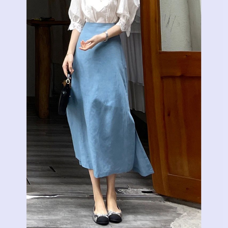 올해 인기있는 라미 린넨 소재 하이 허리 스플릿 스커트 여성 디자인 세련된 독특한 슬림 A 라인 오버 스커트스토어 가기