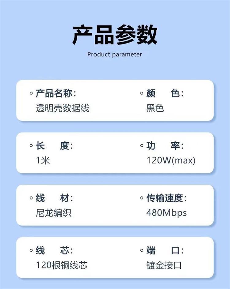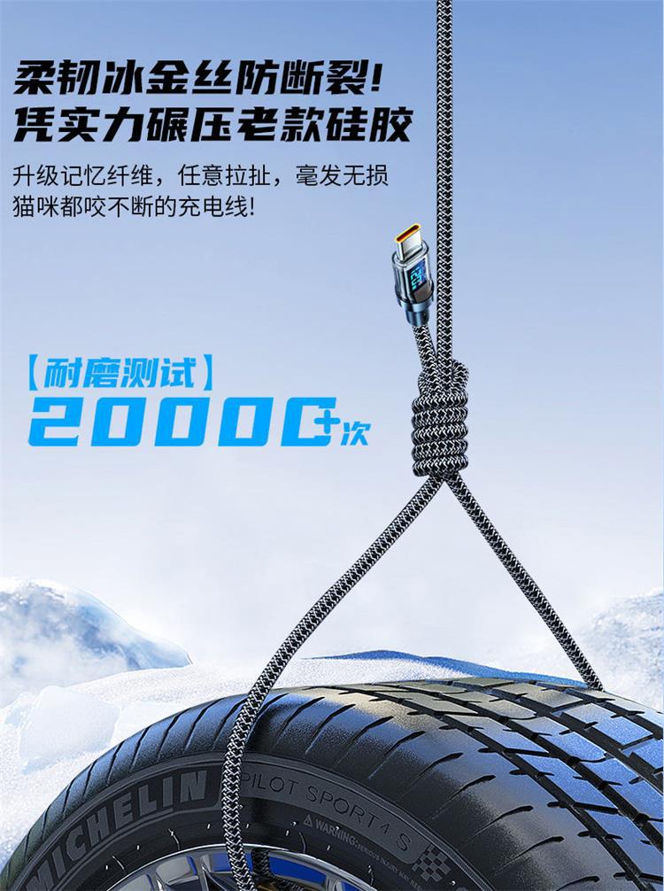 智能数显快充数据线typec显示功率适用华为6A平板充电线120W快充