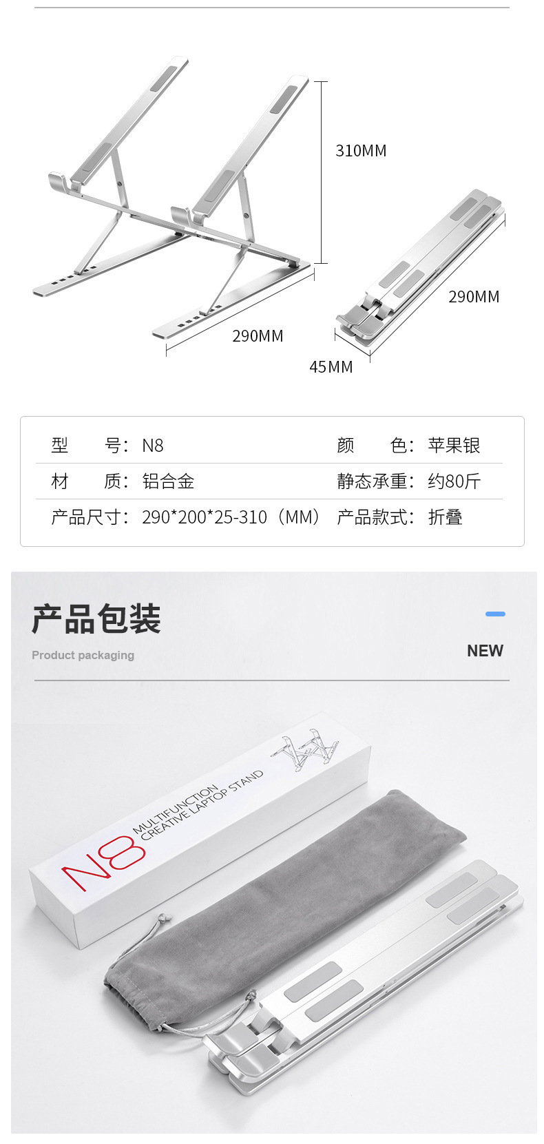 대외 무역 금속 N8 노트북 브래킷 알루미늄 합금 더블 레이어 노트북 컴퓨터 브래킷 접이식 열 분산