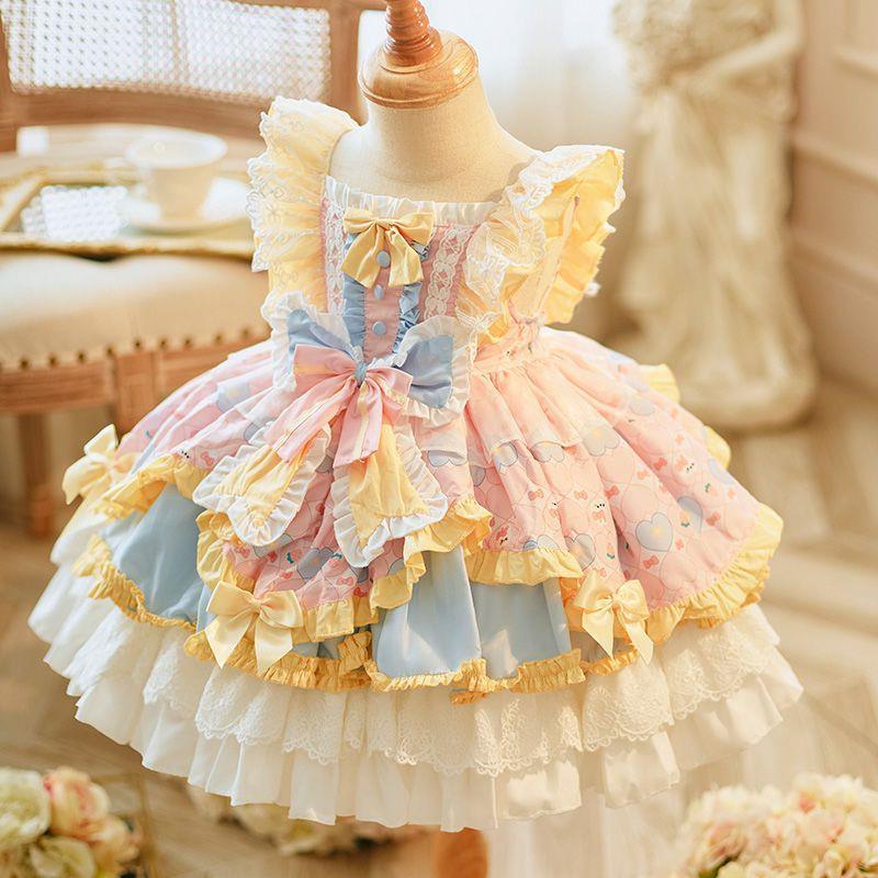 소녀 로리타 새 공주 원피스 아기의 1 년 생일 원피스 어린이 푹신한 원피스 세련된 공연 원피스