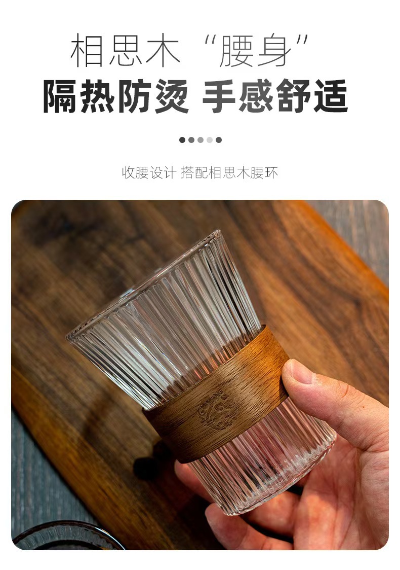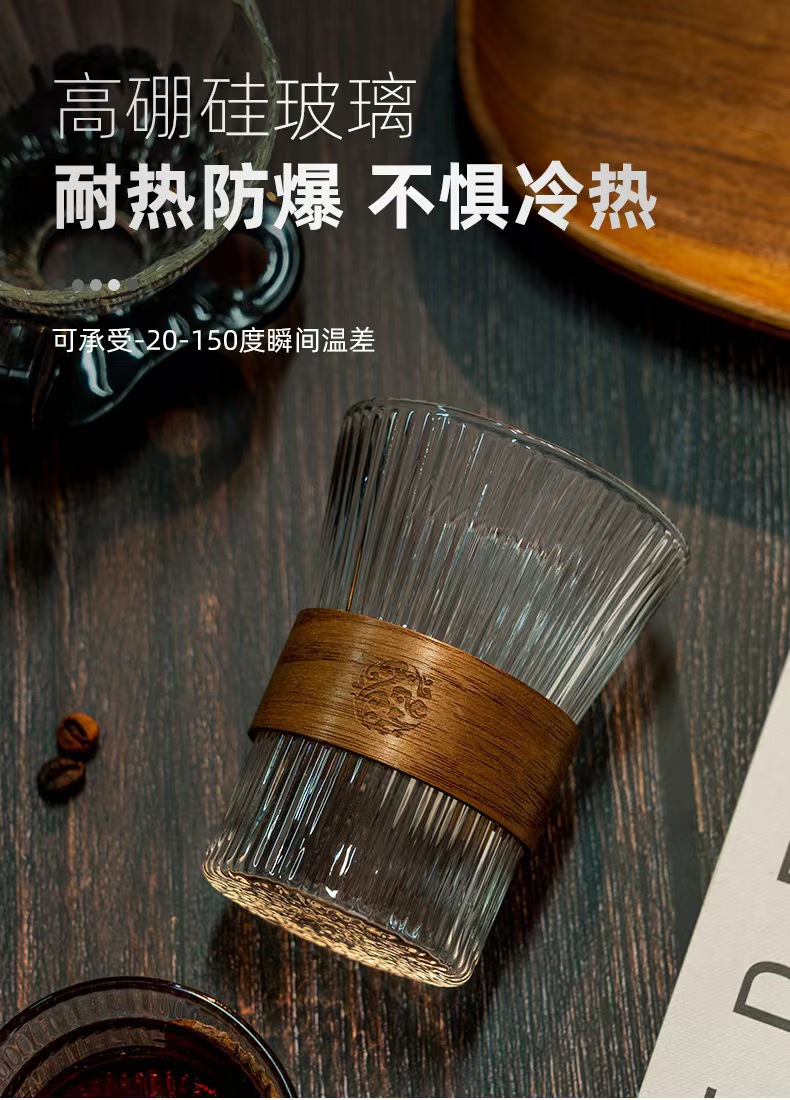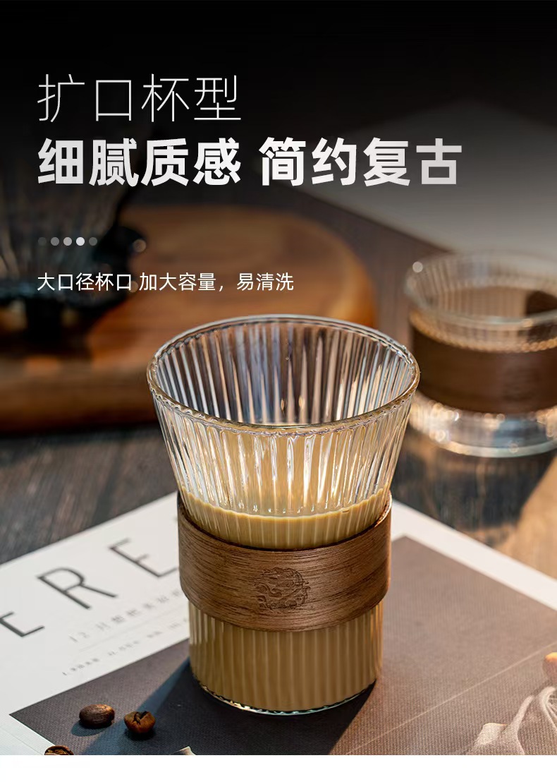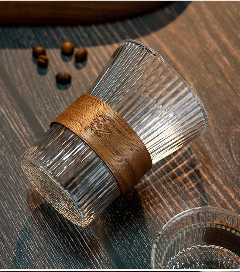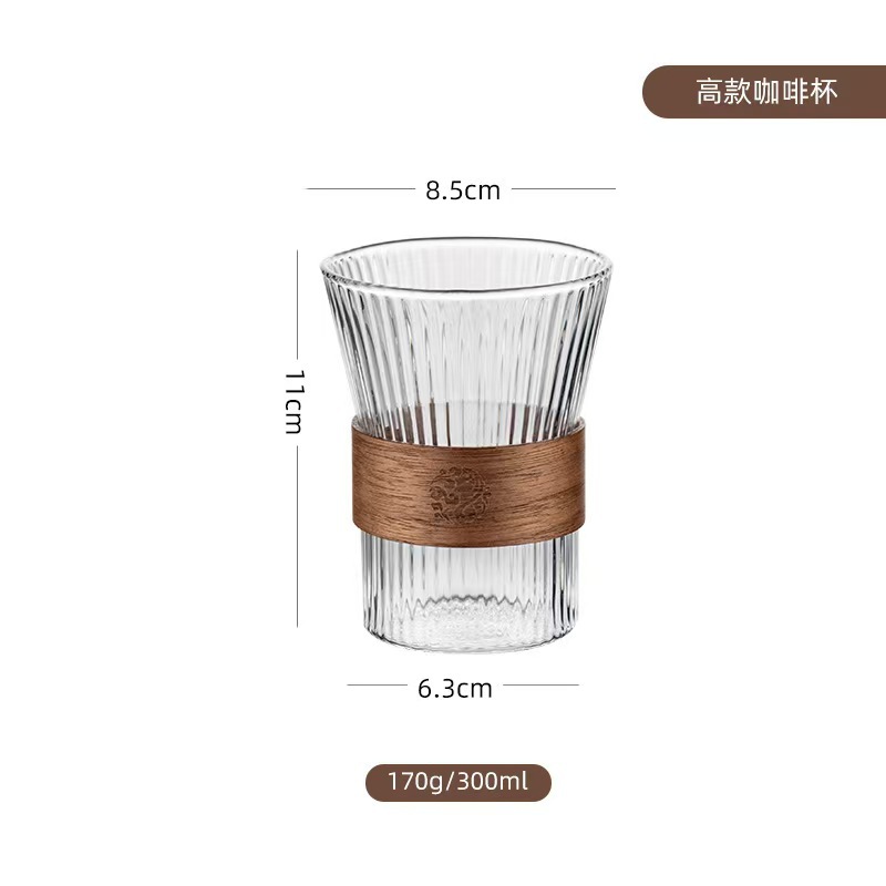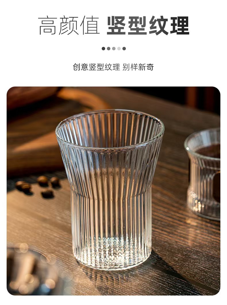 일본식 세로 무늬 내열 유리 물컵 핸드드립 커피컵 차컵 고급스러운 디자인 인기 휴대용스토어 가기