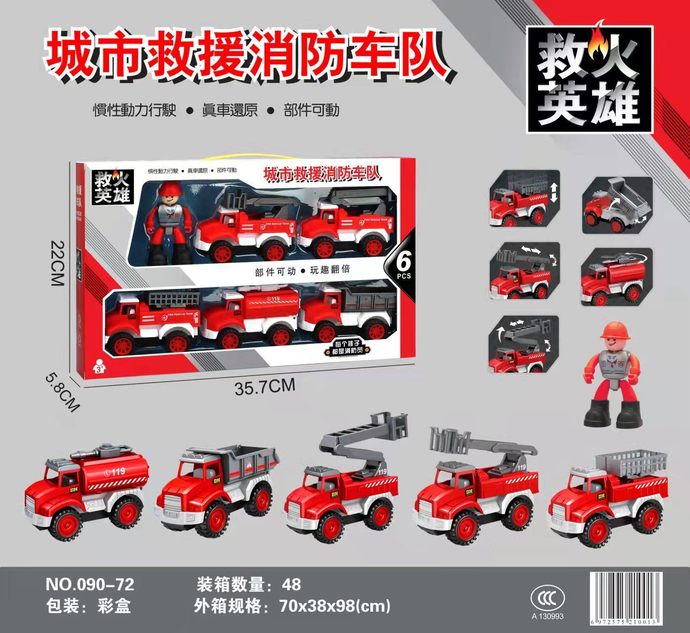 동남 아시아 핫 세일 어린이 관성 엔지니어링 소방차 굴삭기 세트 야시장 스톨 도매 선물 상자 장난감스토어 가기