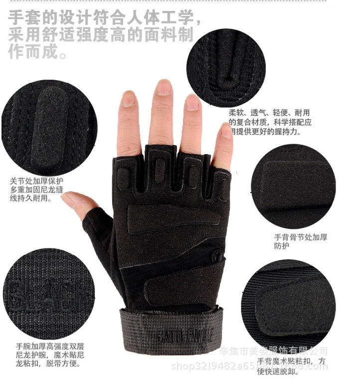 공급 도매 남성 검은 매 야외 반 손가락 장갑 전술 장갑 등산 스포츠 군사 팬 피트니스 장갑 남성