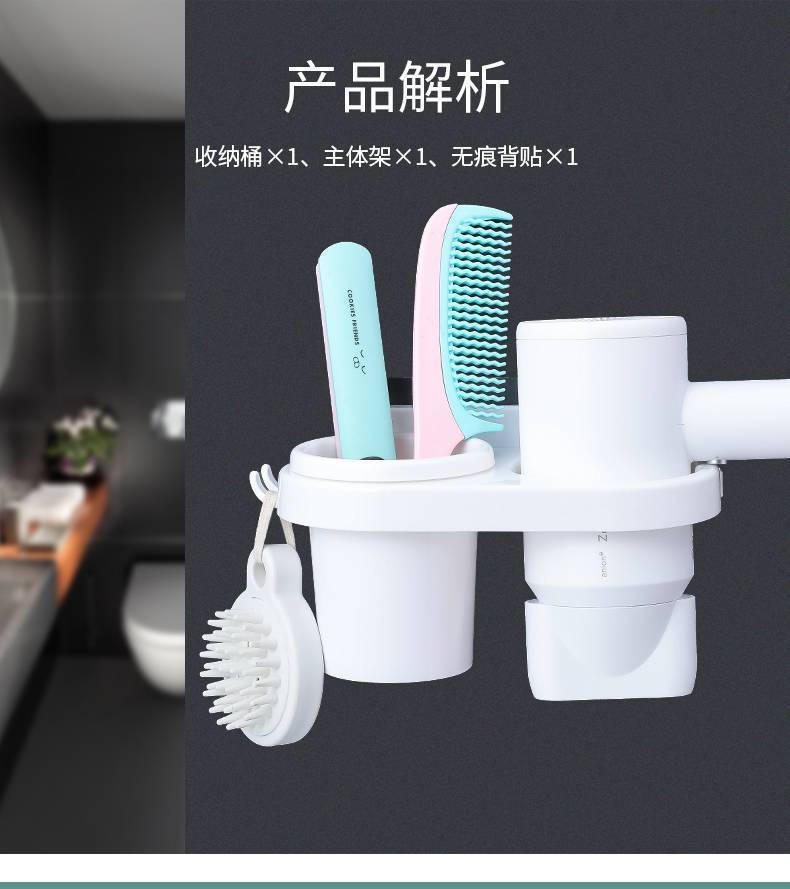헤어 드라이어 보관 랙 욕실 화장실 보관 브래킷 랙 구멍이없는 벽걸이 형 화장실 다기능 드럼