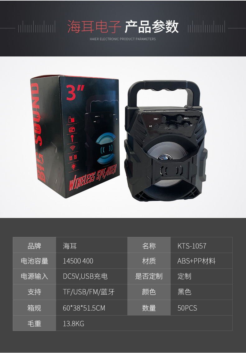 Haier 야외 노래방 블루투스 스피커 휴대용 USB 서브우퍼 대용량 피트니스 및 댄스스토어 가기