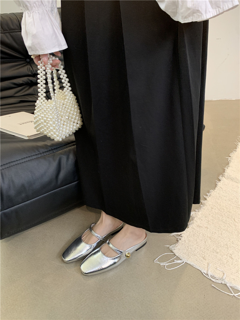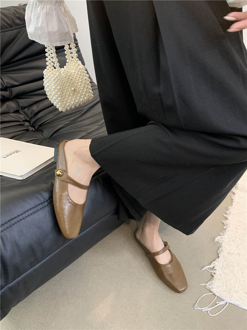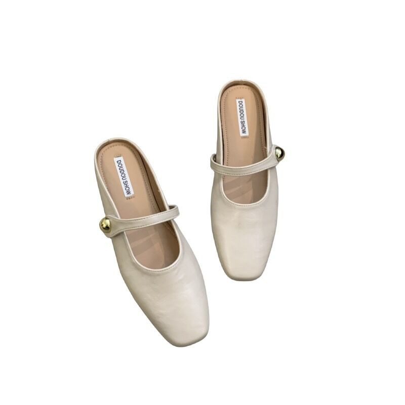봄과 가을 2024 새로운 요정 스타일 플랫 바닥 바오터 하프 슬리퍼 여성 외부 착용 슬립 온 작은 향기로운 스타일 게으른 신발스토어 가기