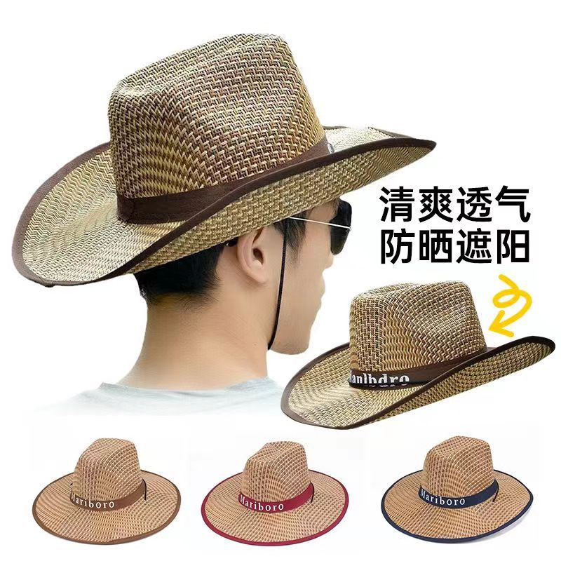 여름 남자 햇빛 모자 야외 여행 자외선 보호 밀짚 모자 산 등산 낚시 선 스크린 서양 데님 밀짚 모자스토어 가기