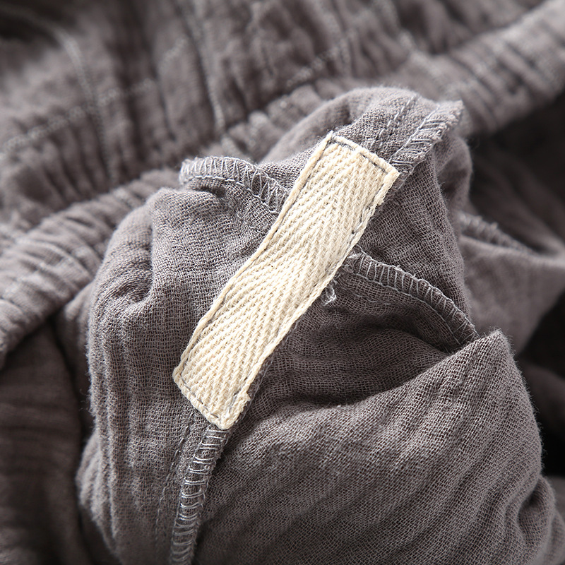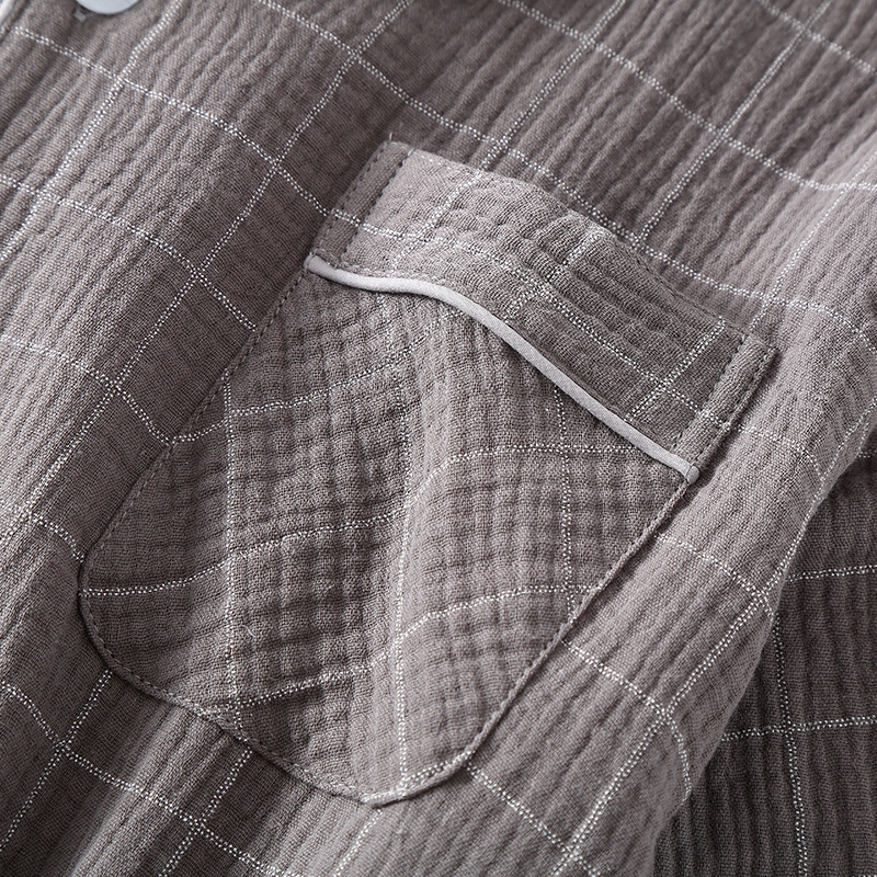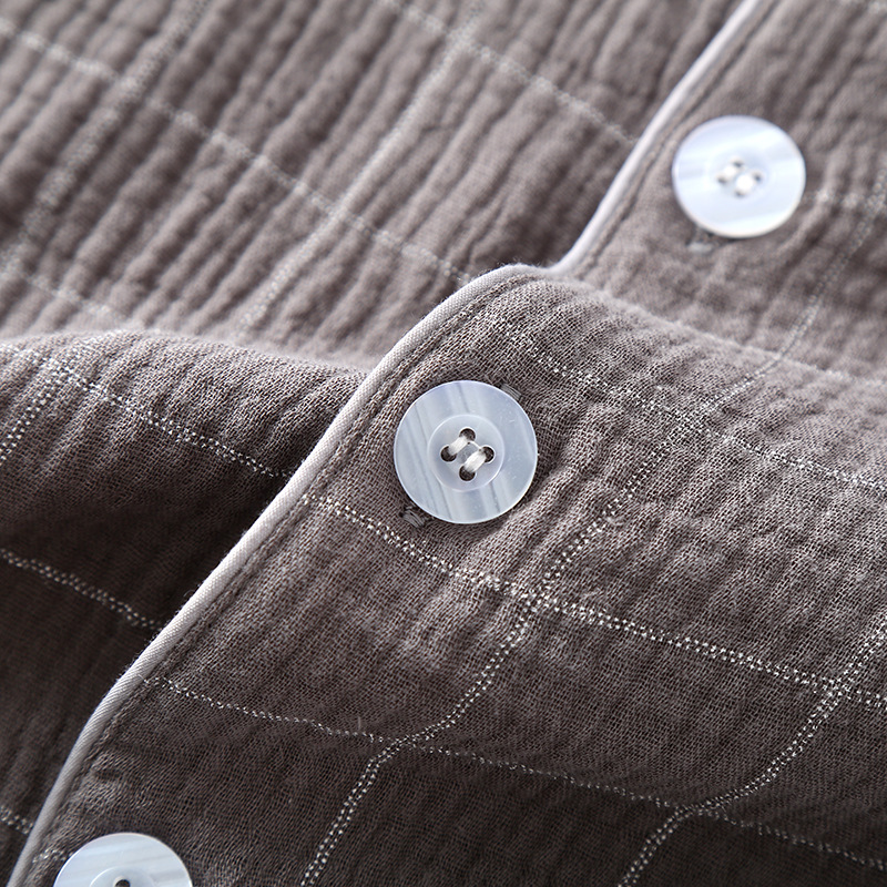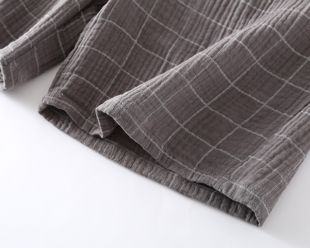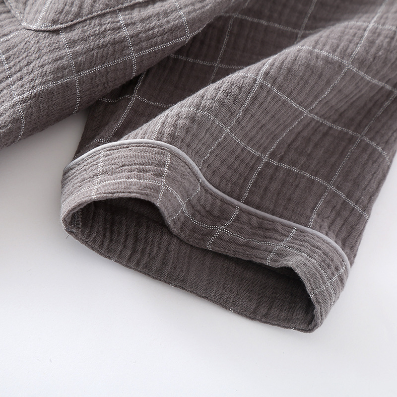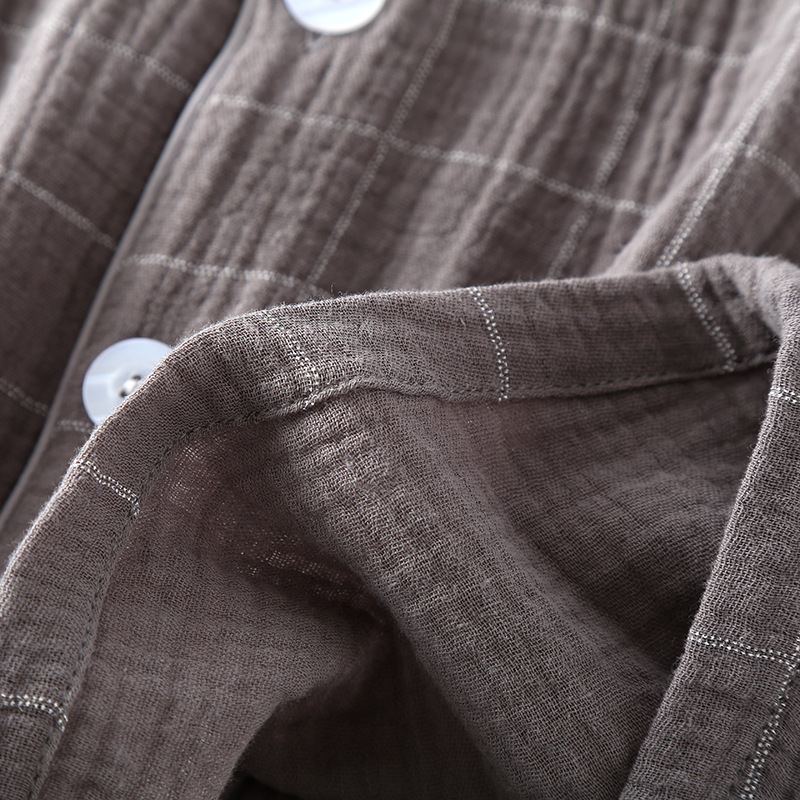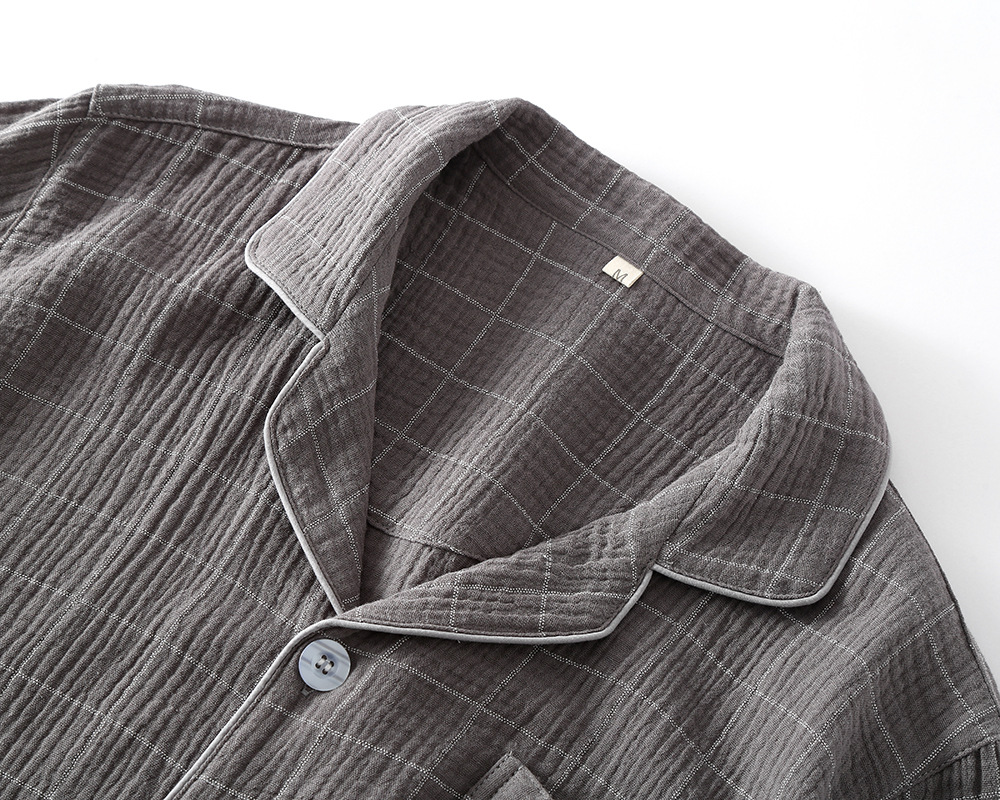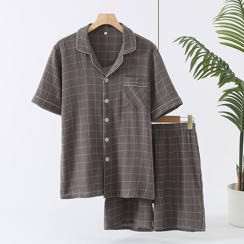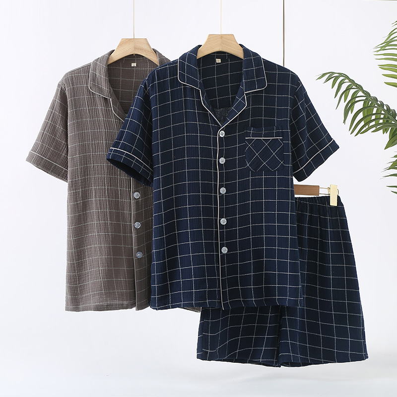 남성 크레페 코튼 원사 여름 새로운 작은 옷깃 짧은 소매 반바지 느슨한 플러스 사이즈 세트 파자마 홈 옷스토어 가기