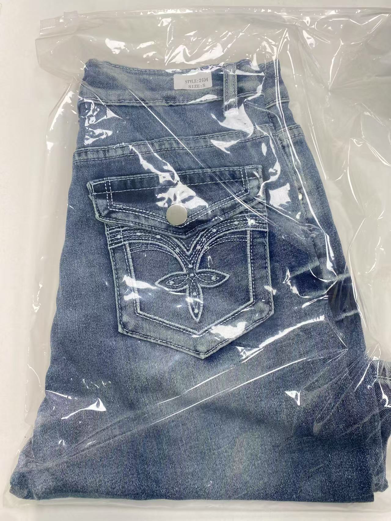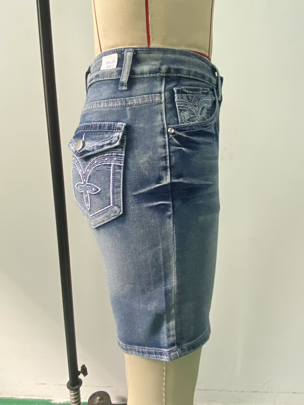유럽과 미국 여성 청바지 국경 독점 데님 패션 슬림 스트레치 데님 중간 바지 자수 청바지스토어 가기