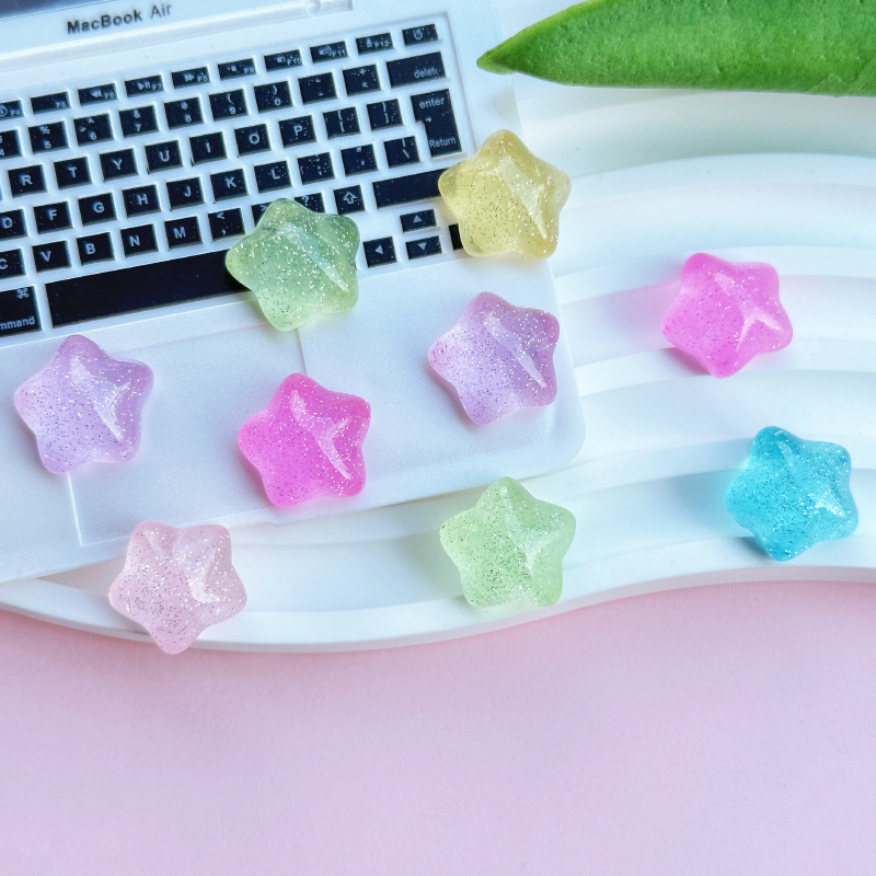 투명 컬러 반짝이 작은 스타 수지 diy 보석 액세서리 휴대 전화 케이스 구멍 신발 패치 머리핀 헤어 액세서리 소재