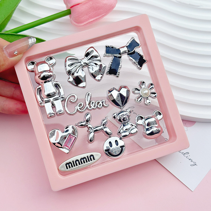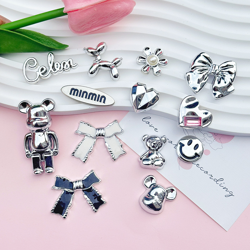 전기 도금 실버 도금 된 폭력적인 곰 DIY 보석 액세서리 구멍 신발 장식 패치 장난감 가방 DIY 수제 재료 도매스토어 가기