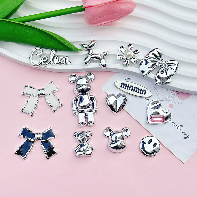 전기 도금 실버 도금 된 폭력적인 곰 DIY 보석 액세서리 구멍 신발 장식 패치 장난감 가방 DIY 수제 재료 도매