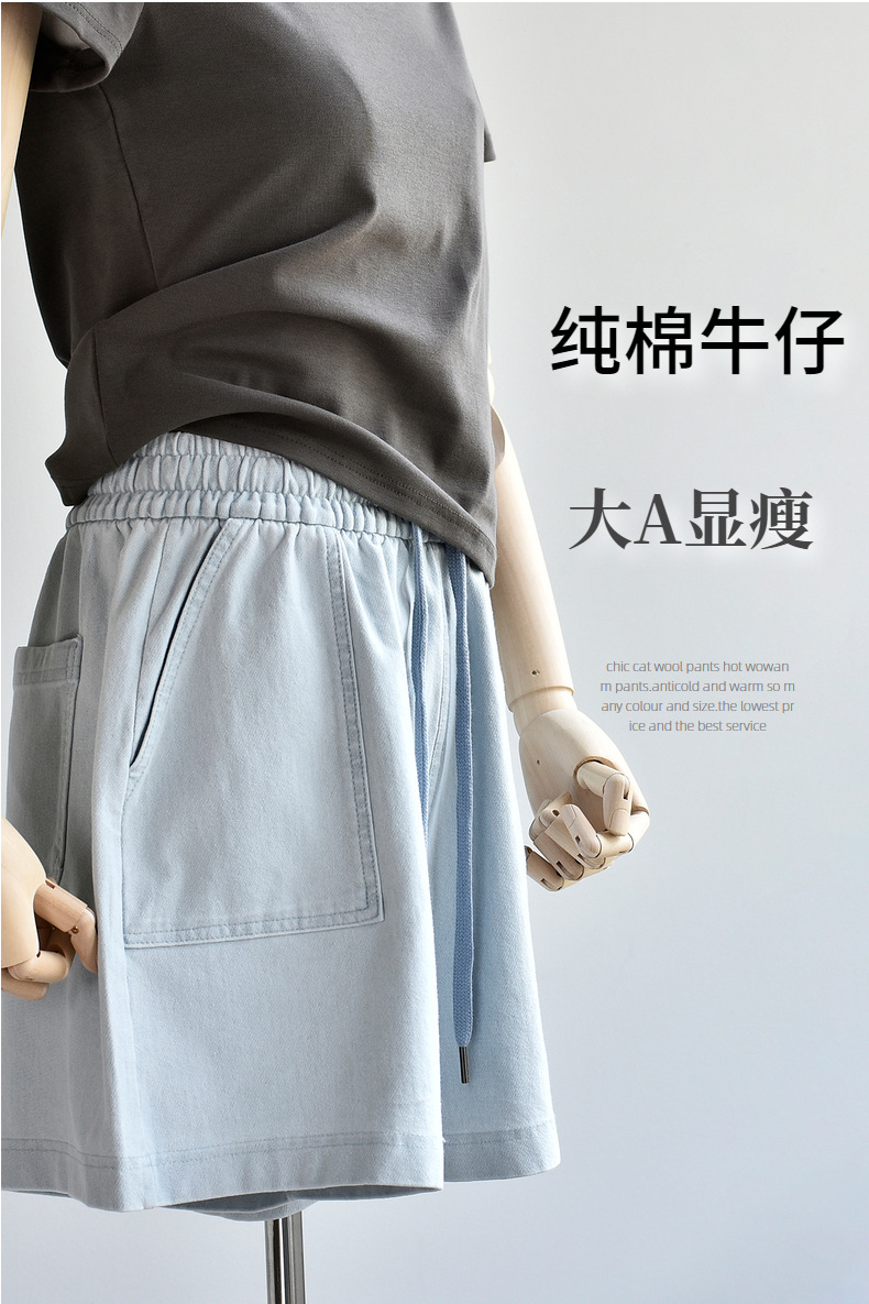 [순면 데님 반바지] 게으른 스타일 여성 국경 폭발 휴식 순면 모래 세척 데님 캐주얼 반바지스토어 가기