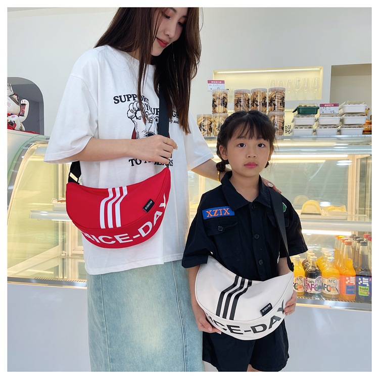 부모-자식 대용량 가슴 가방 2025 한국 유행 브랜드 캔버스 보관 가방 큰 어린이 잘 생긴 줄무늬 잘 생긴 여행 가방