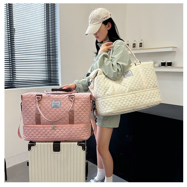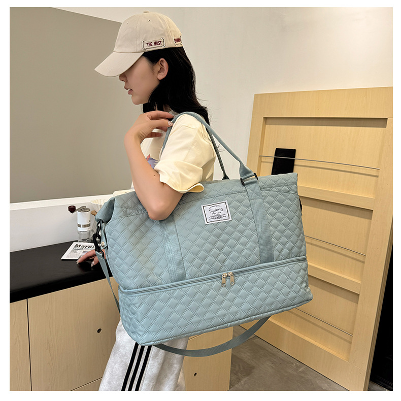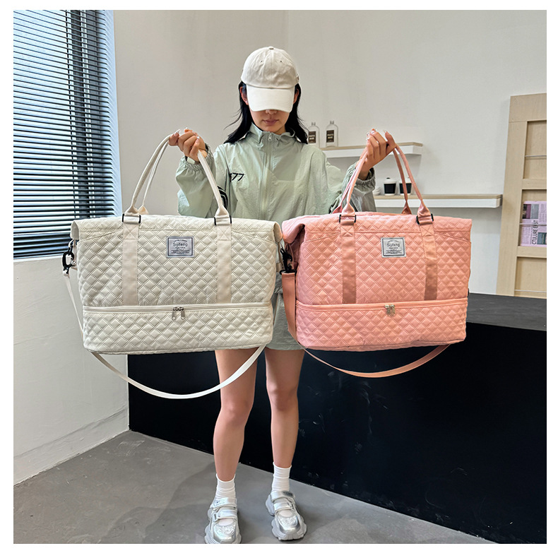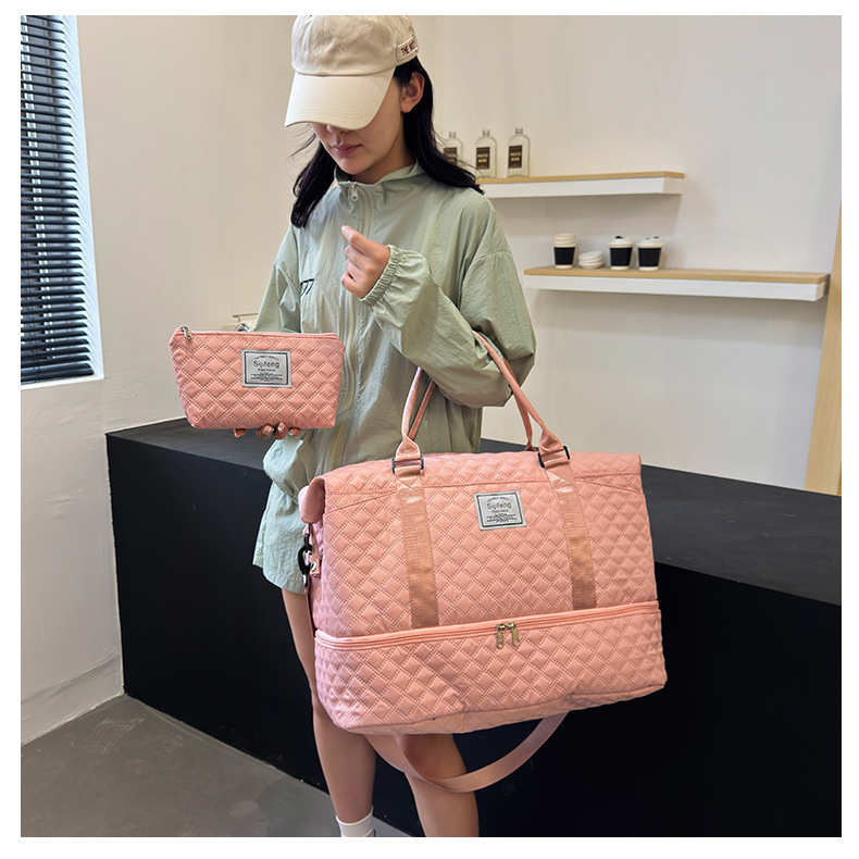 한국 스타일 Rhomboid 자수 Thline 가방 저장 가방 크로스 바디 휴대용 가방 요가 피트니스 가방 대용량 여행 가방