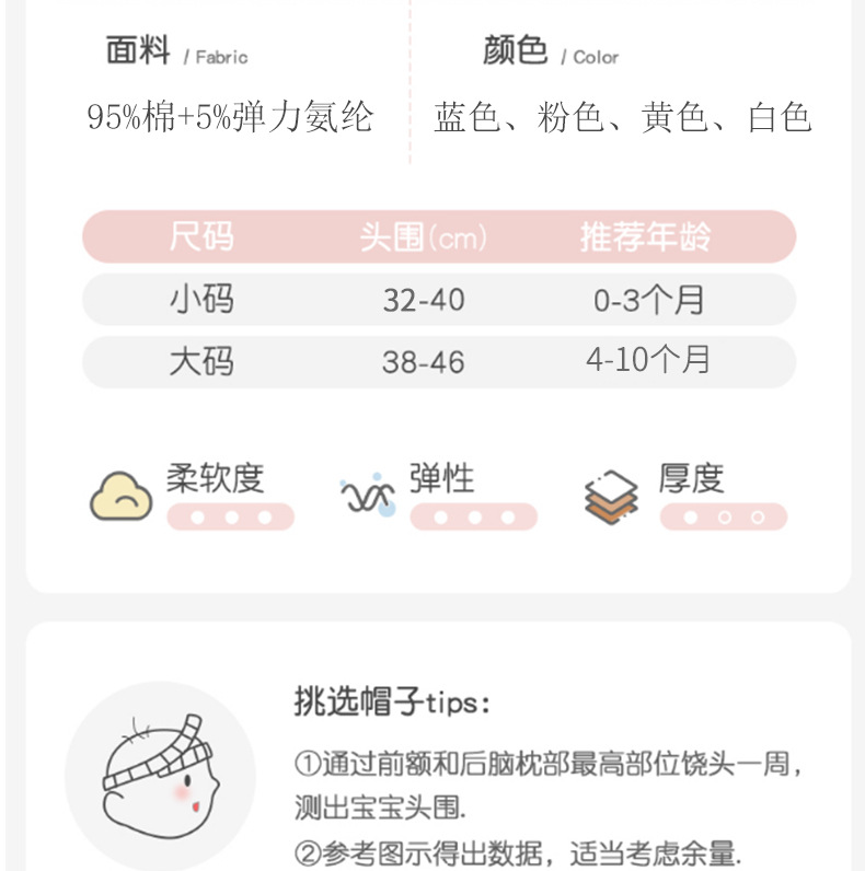• M 플러스 사이즈 머리 둘레 37-45cm 권장 3-9 개월
