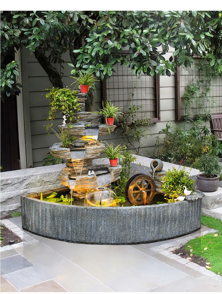 대규모 안뜰 바위 흐르는 물 분수 풍수 휠 발코니 사무실 장식품 빌라 야외 정원 물고기 연못 조경스토어 가기