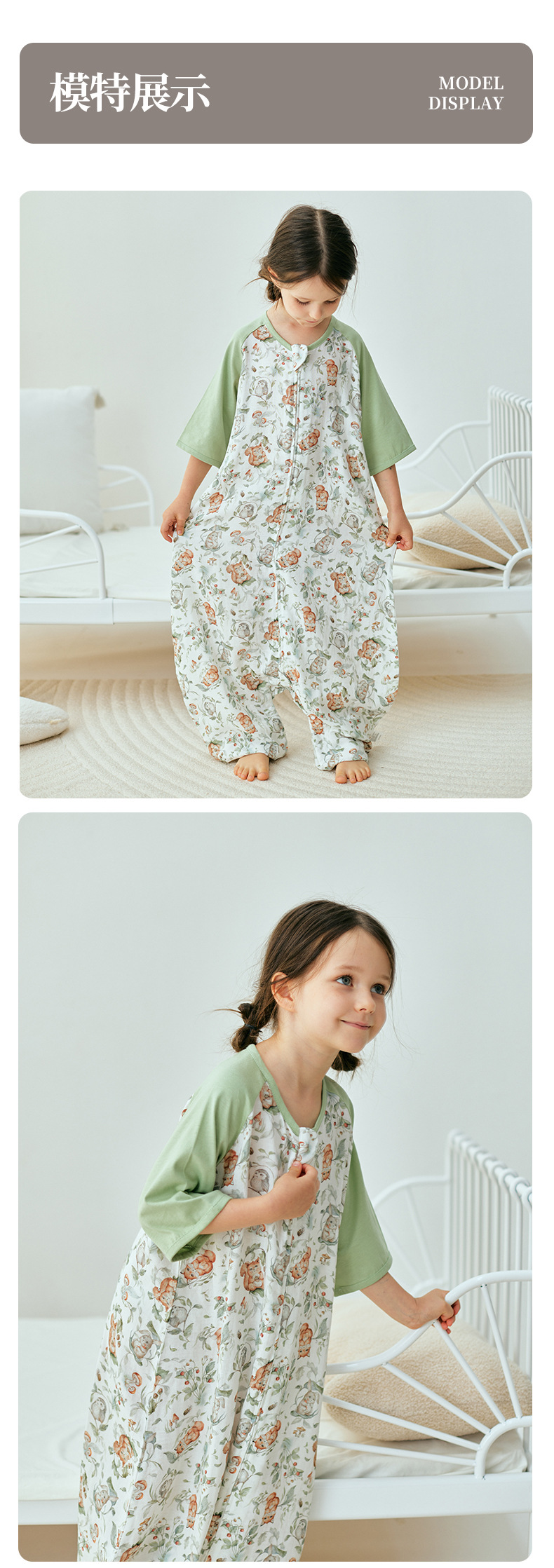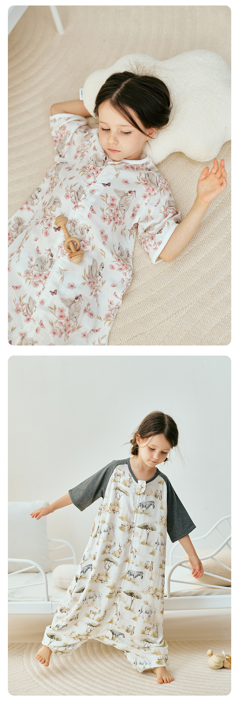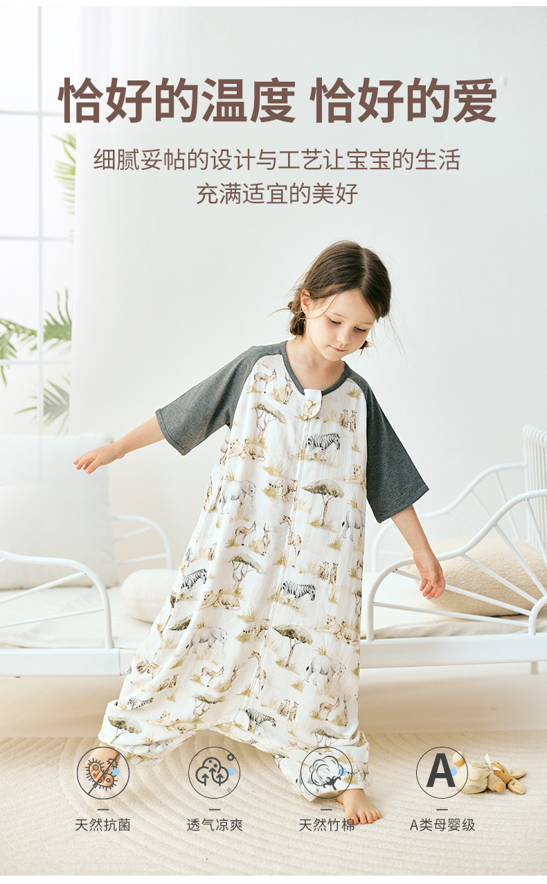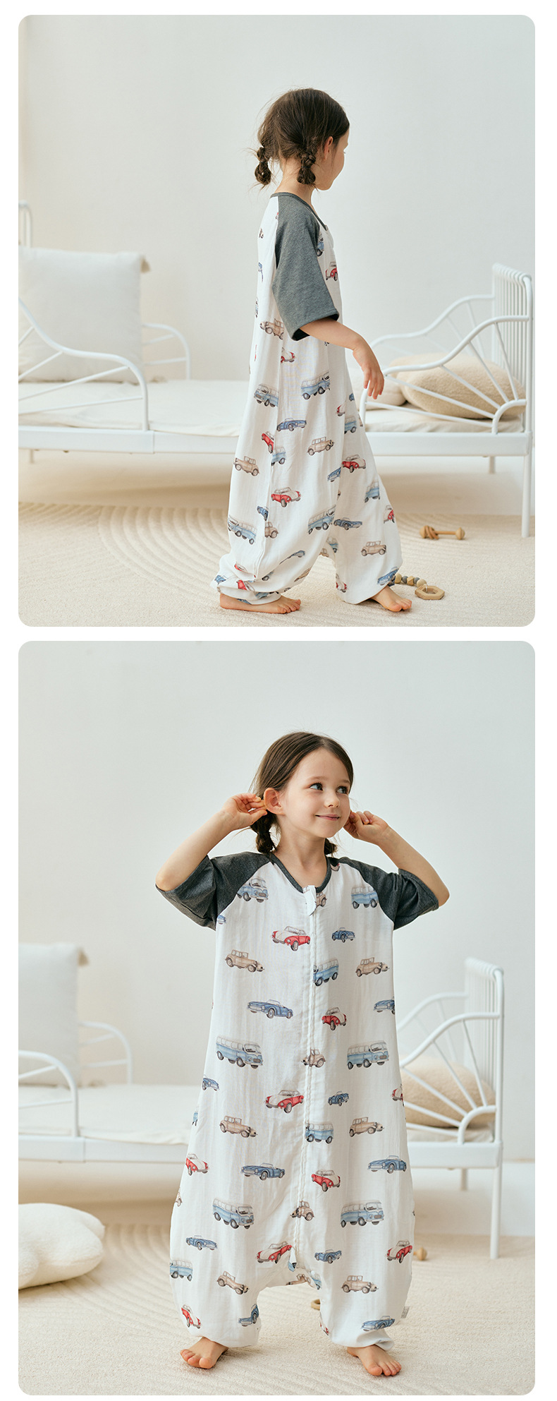 여름용 대나무 섬유 얇은 대나무 면 거즈 배 보호 반팔 아동 유아 에어컨 방용 다리 분리형 수면 가방스토어 가기
