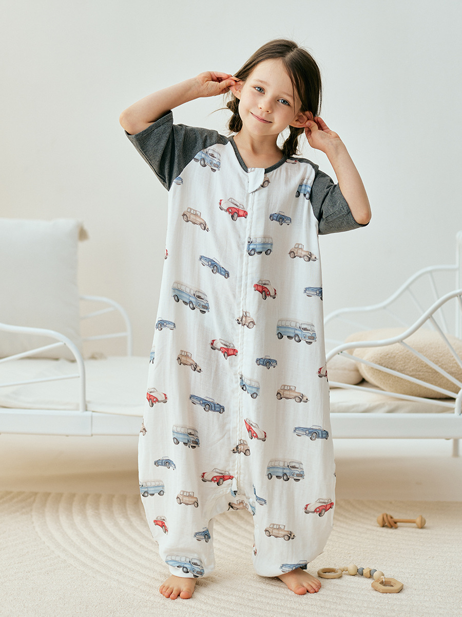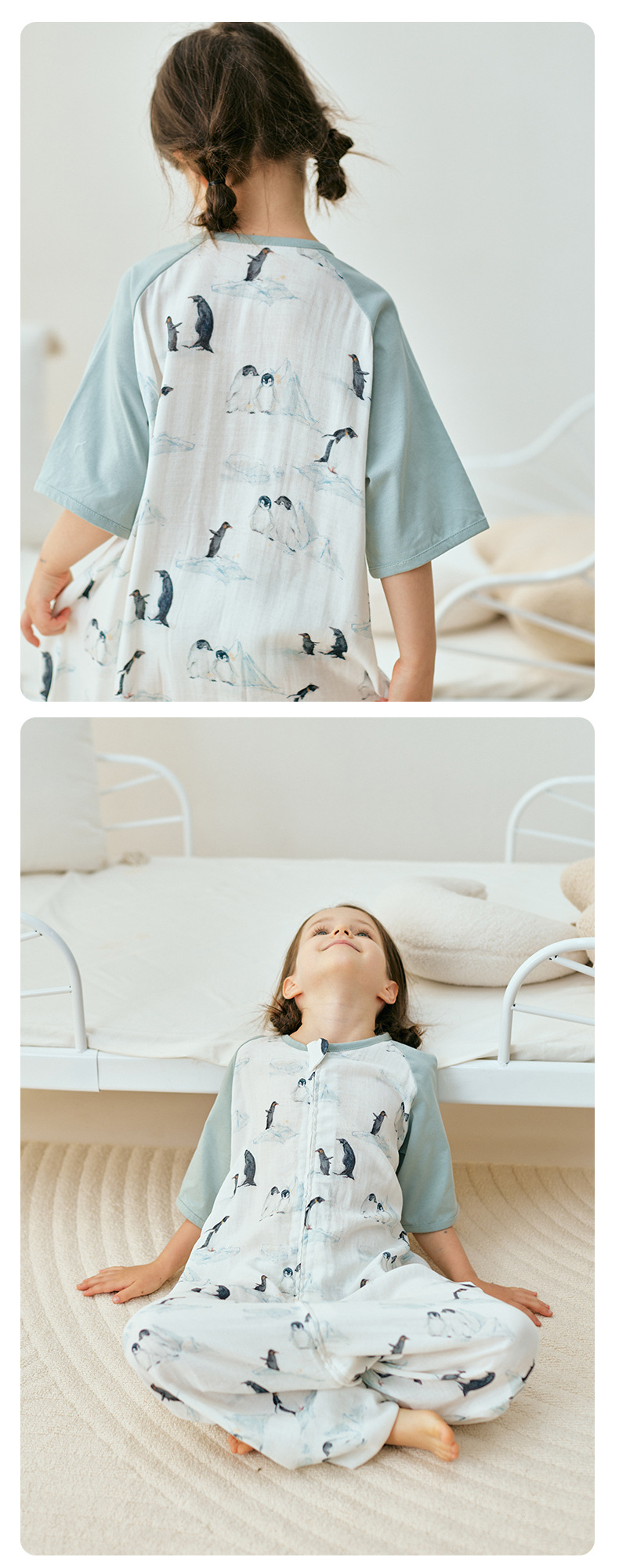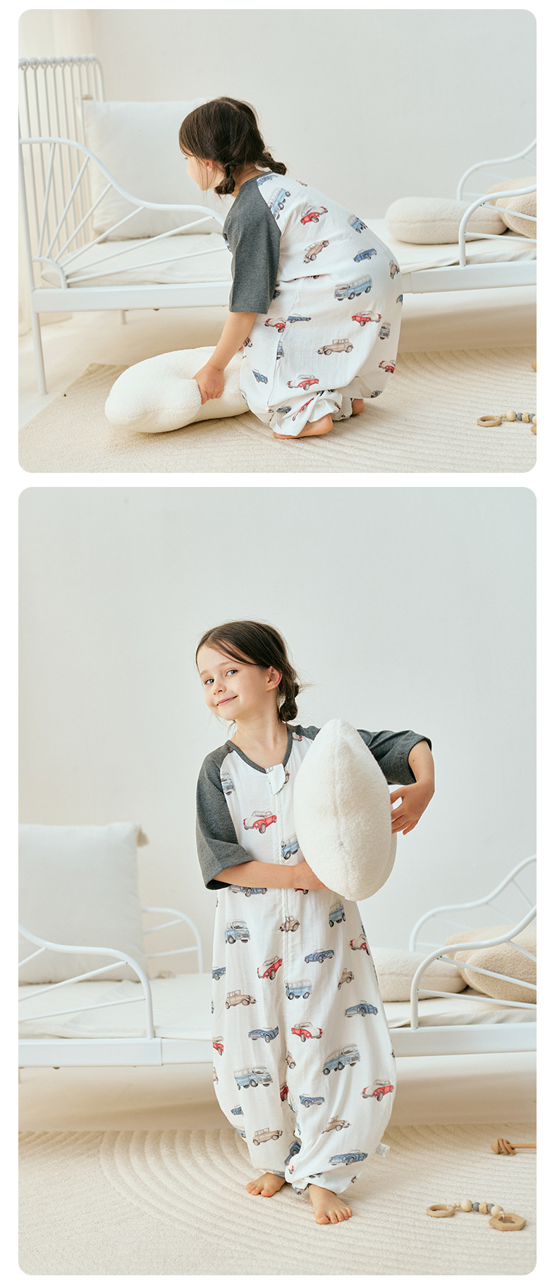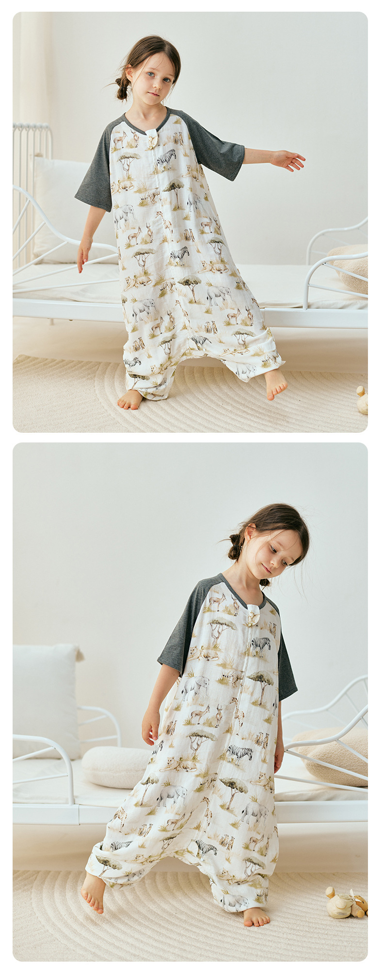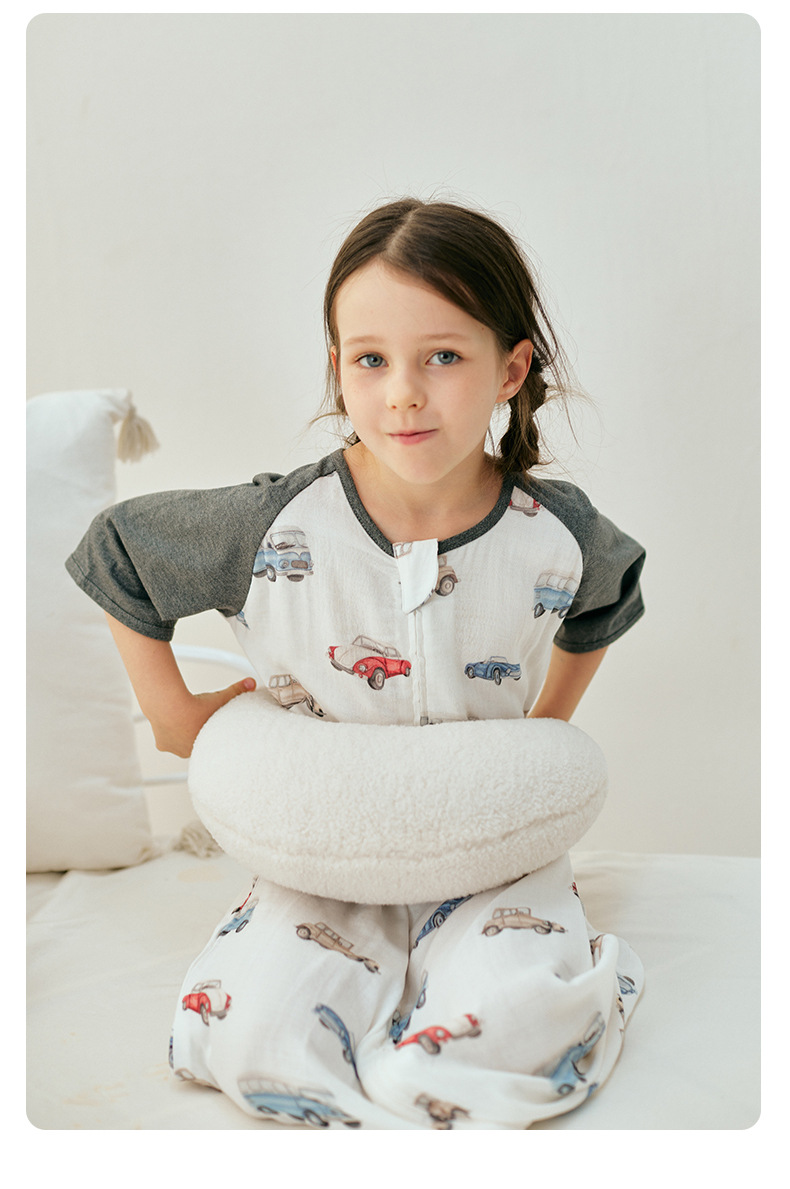 여름용 대나무 섬유 얇은 대나무 면 거즈 배 보호 반팔 아동 유아 에어컨 방용 다리 분리형 수면 가방스토어 가기