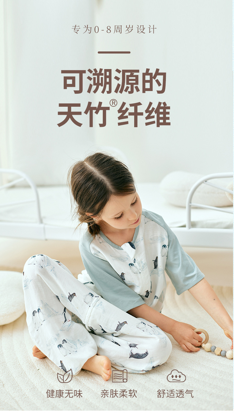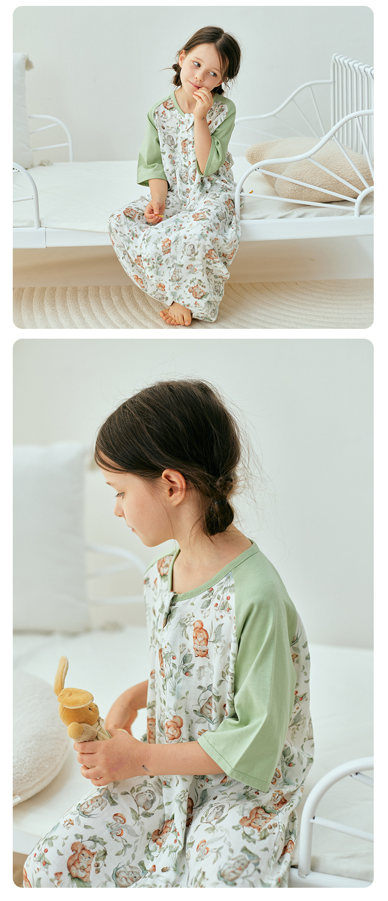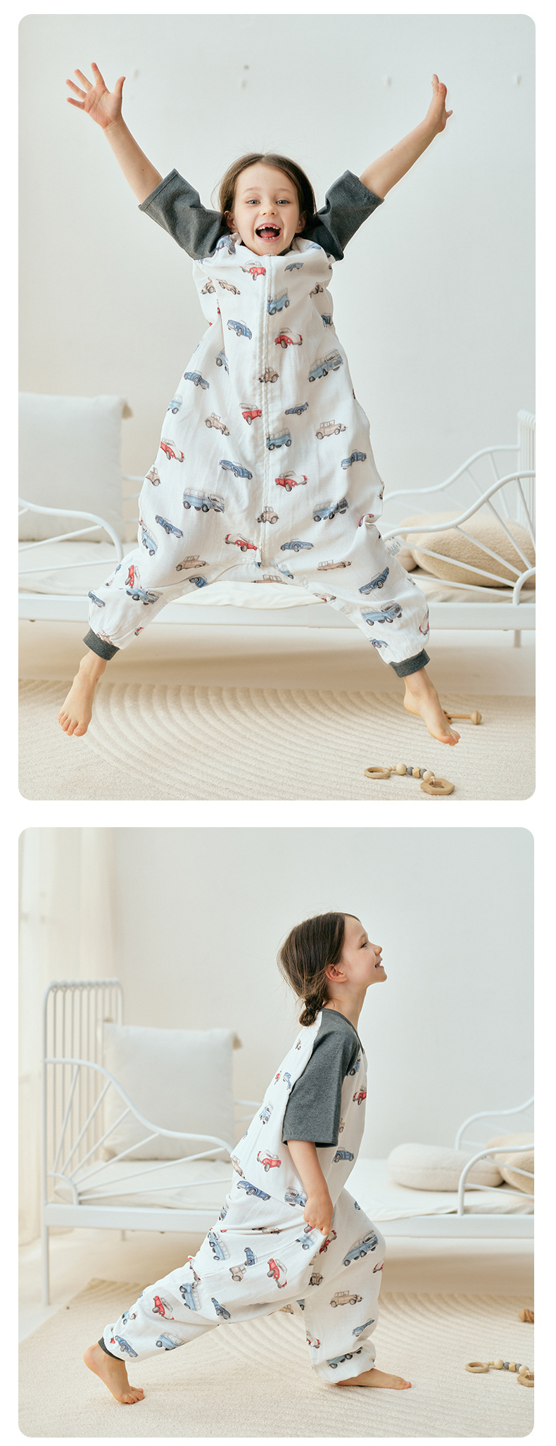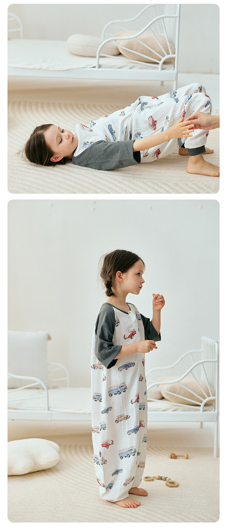 여름용 대나무 섬유 얇은 대나무 면 거즈 배 보호 반팔 아동 유아 에어컨 방용 다리 분리형 수면 가방스토어 가기