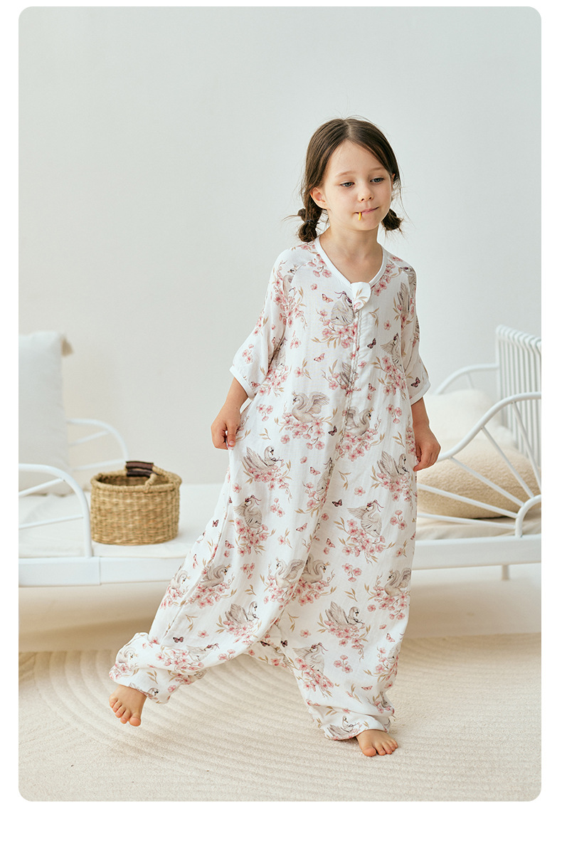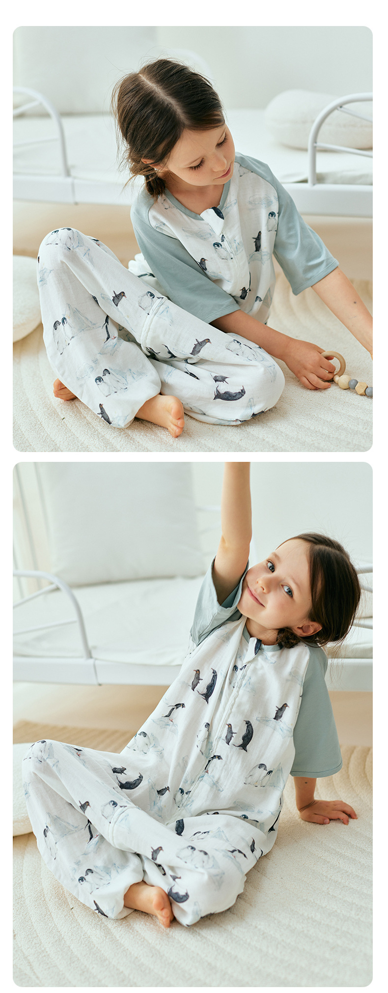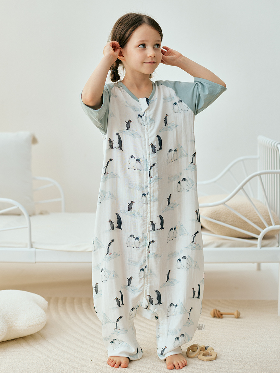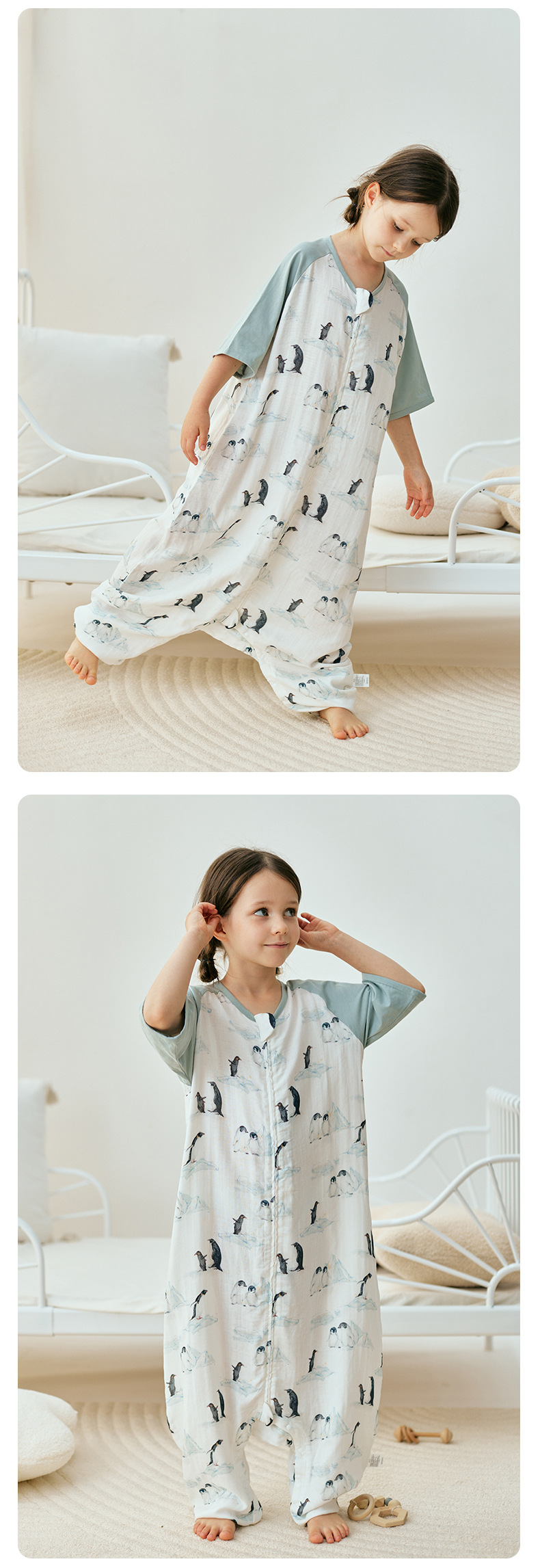여름용 대나무 섬유 얇은 대나무 면 거즈 배 보호 반팔 아동 유아 에어컨 방용 다리 분리형 수면 가방