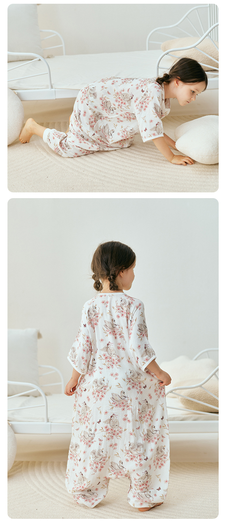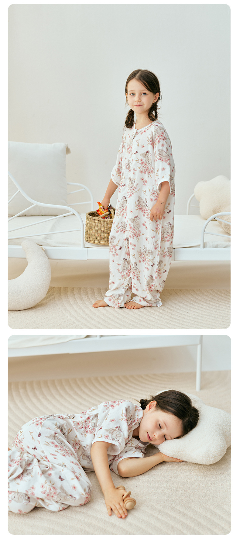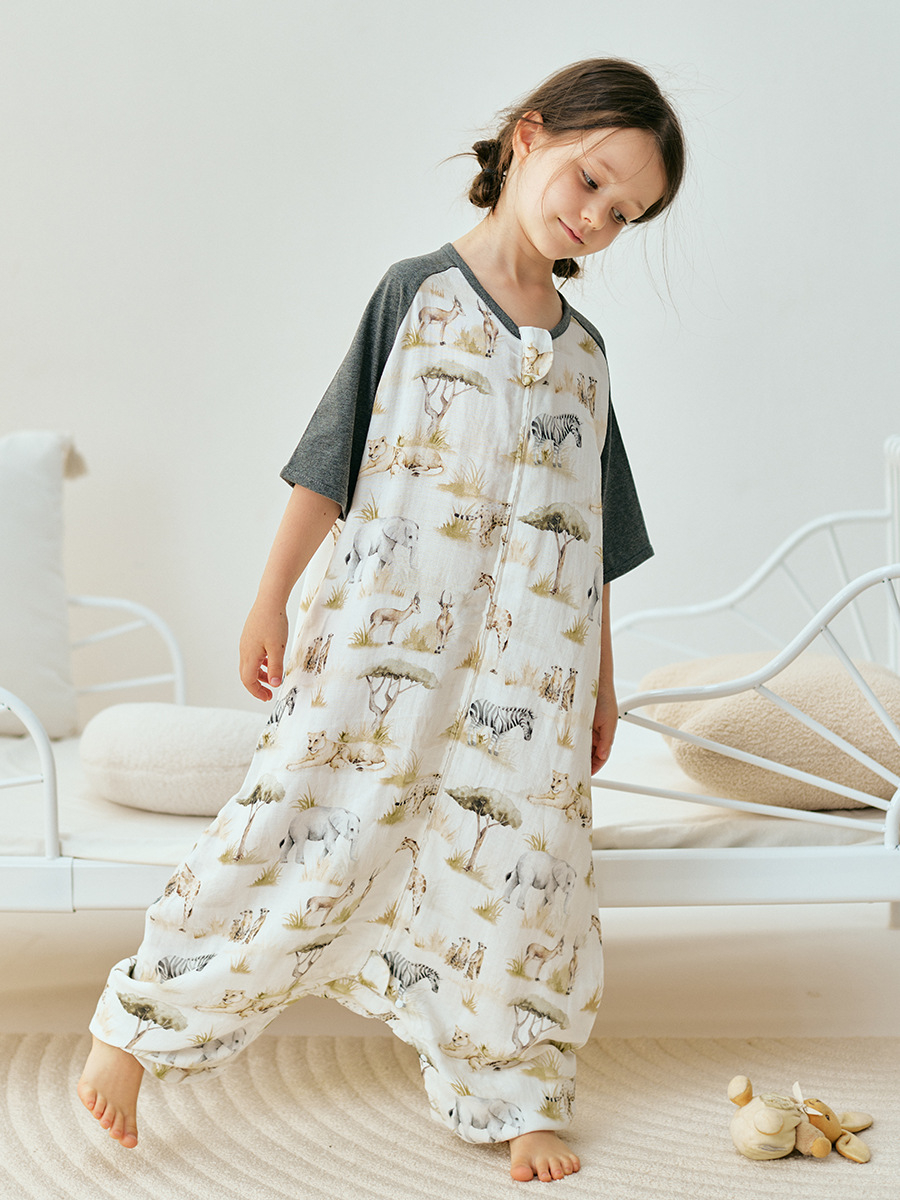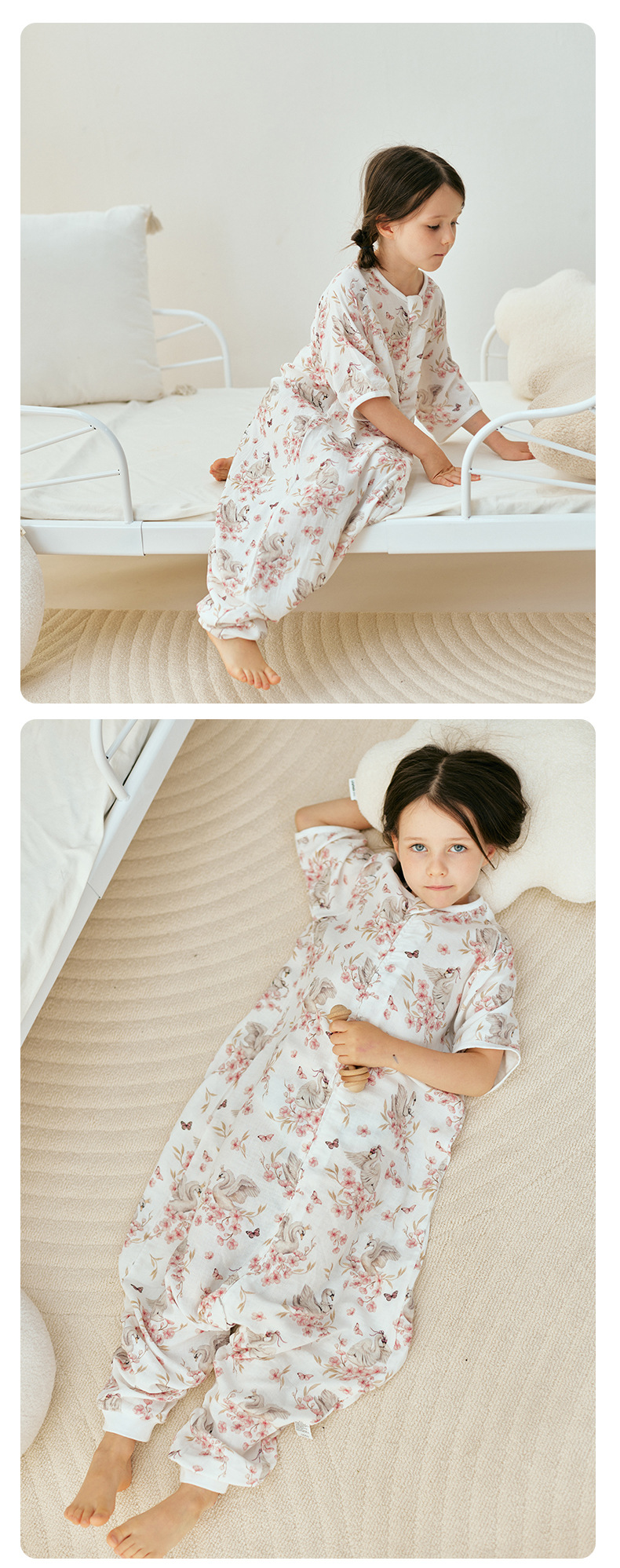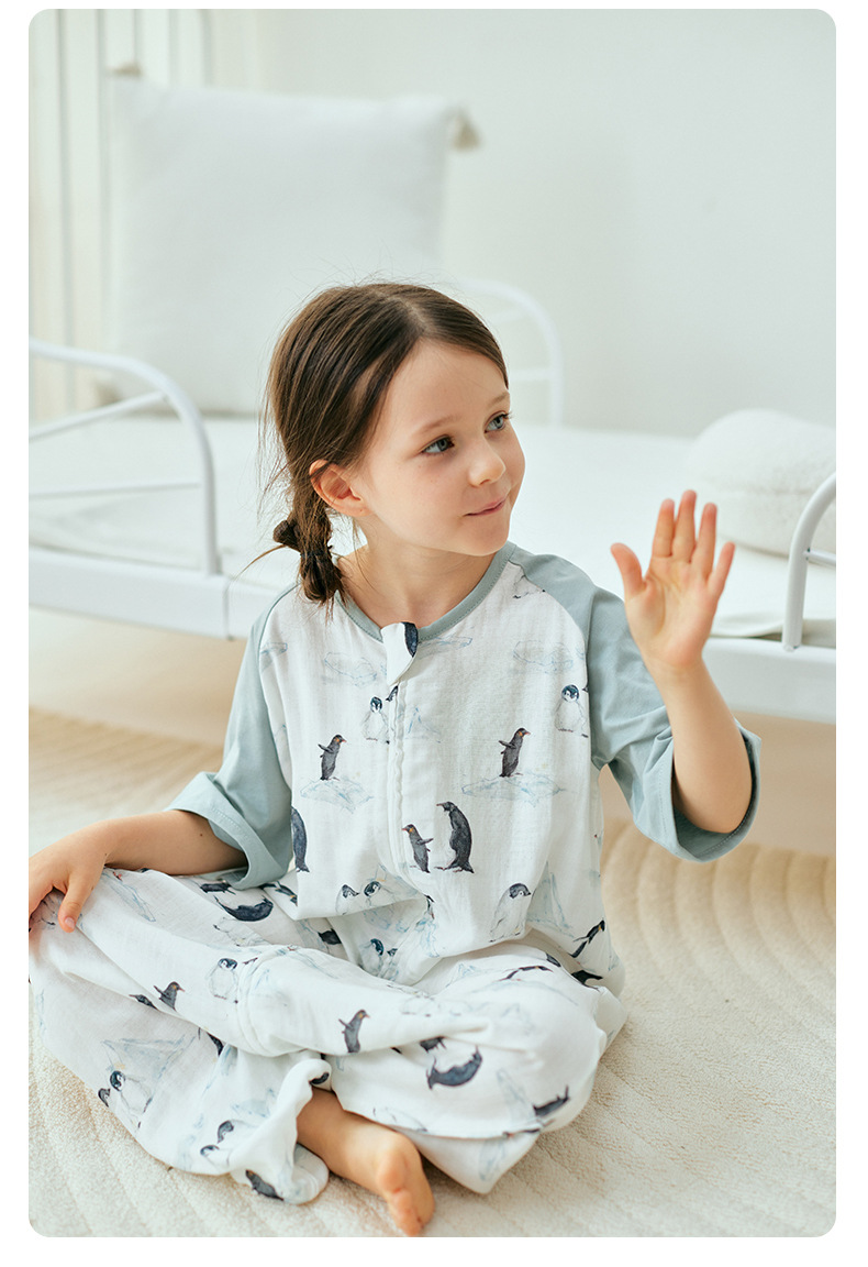 여름용 대나무 섬유 얇은 대나무 면 거즈 배 보호 반팔 아동 유아 에어컨 방용 다리 분리형 수면 가방