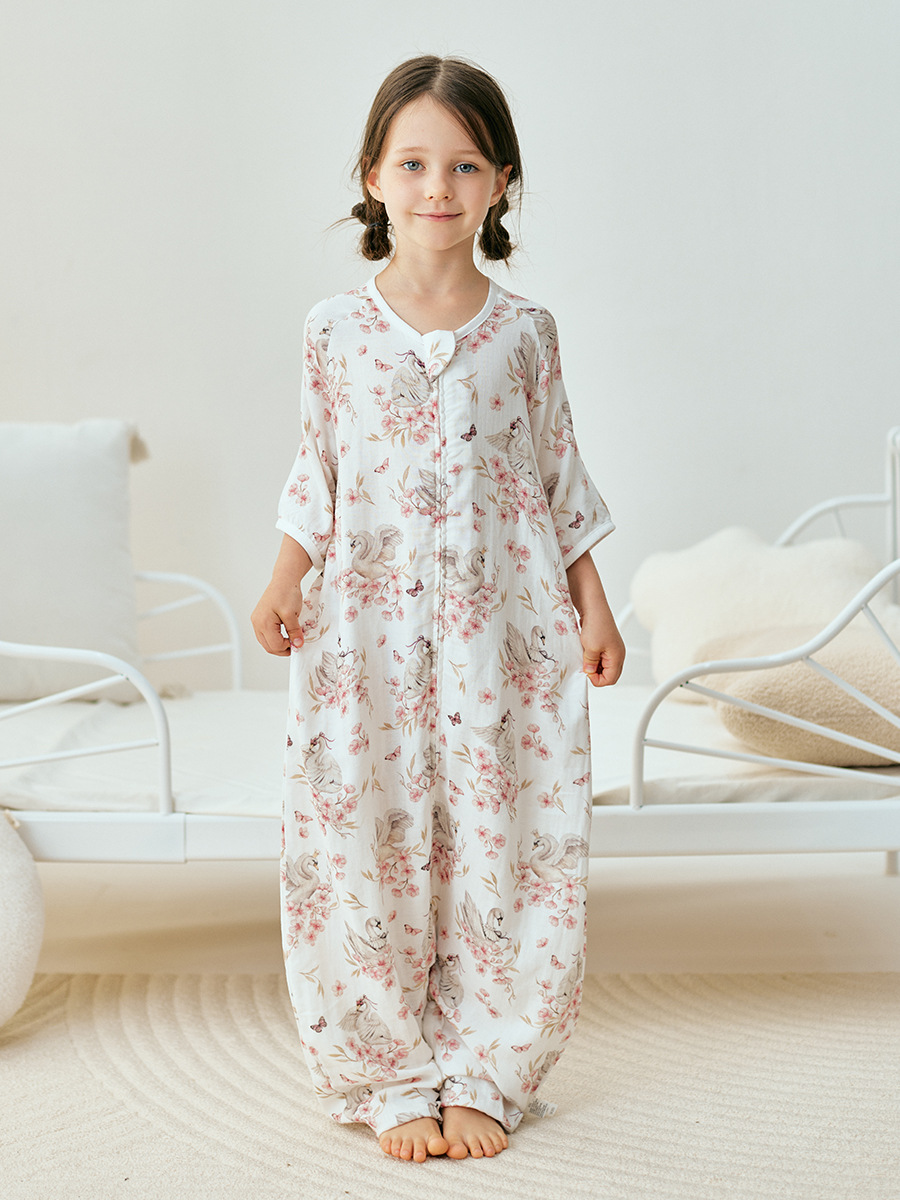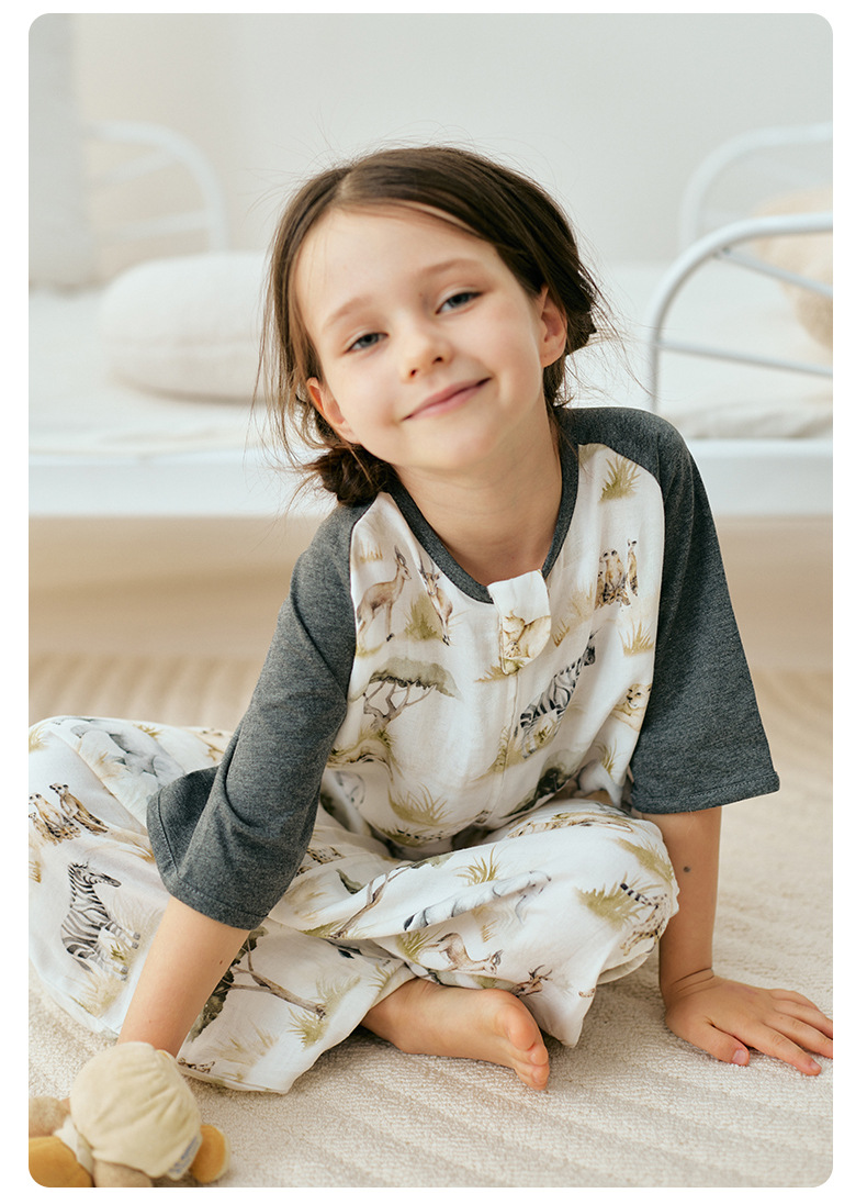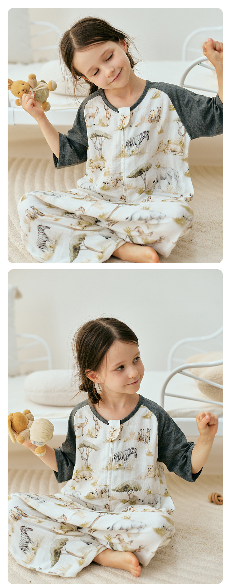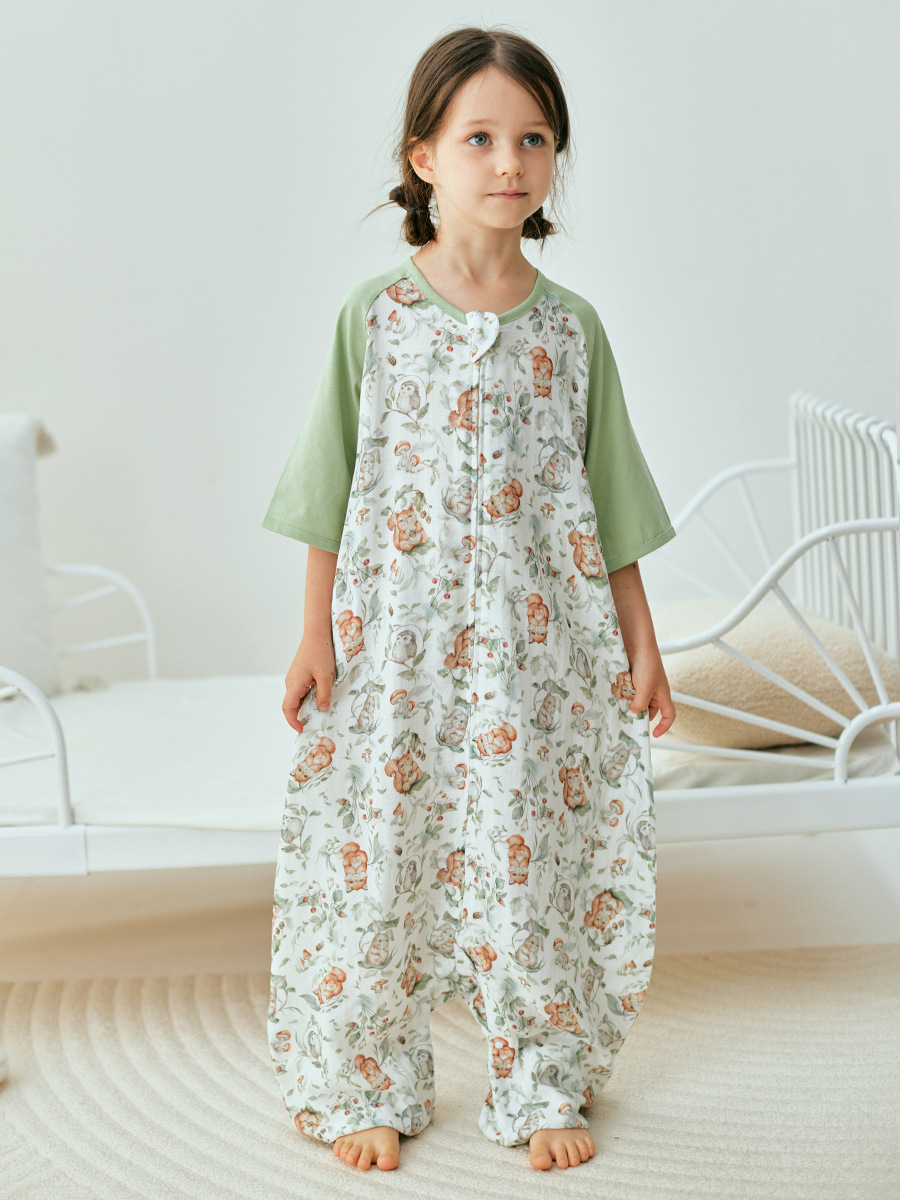 여름용 대나무 섬유 얇은 대나무 면 거즈 배 보호 반팔 아동 유아 에어컨 방용 다리 분리형 수면 가방