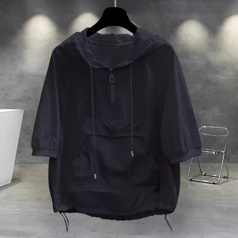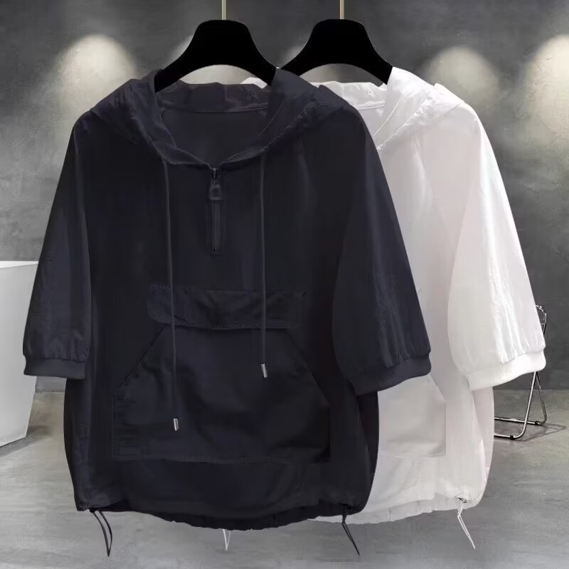 여름 캐주얼 후드 선스크린 5 소매 티셔츠 남성과 여성의 야외 여행 빠른 건조 남성과 여성의 재킷 트렌디 한 성격스토어 가기