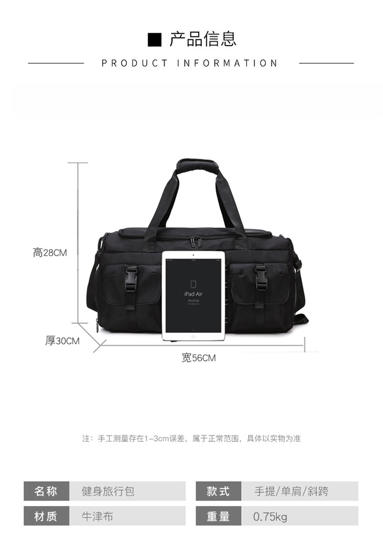 배낭 여행 가방 건조하고 젖은 분리 피트니스 가방 신발 빈 소매 넥타이 짧은 거리 대용량 요가 가방