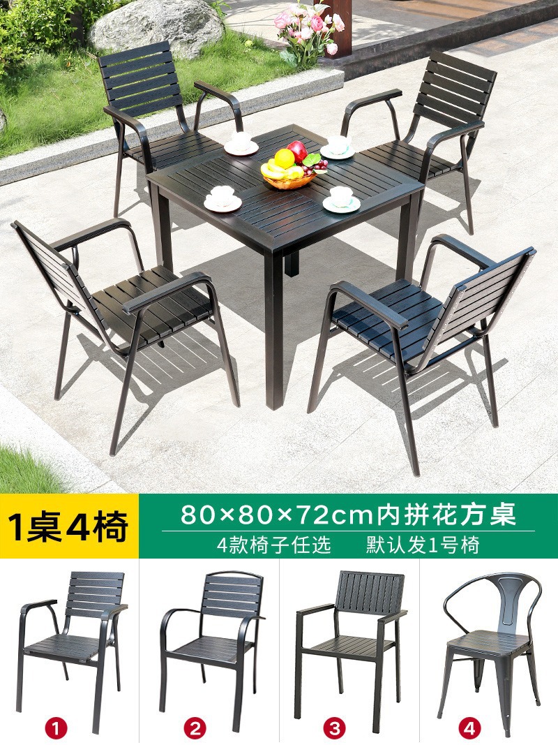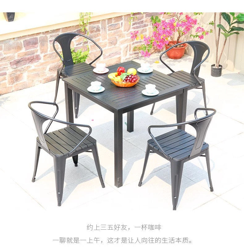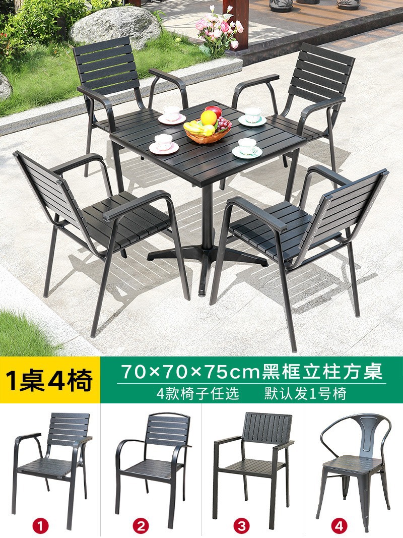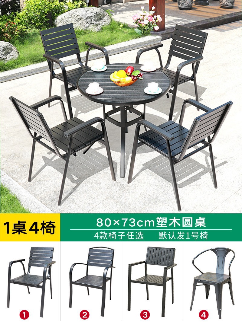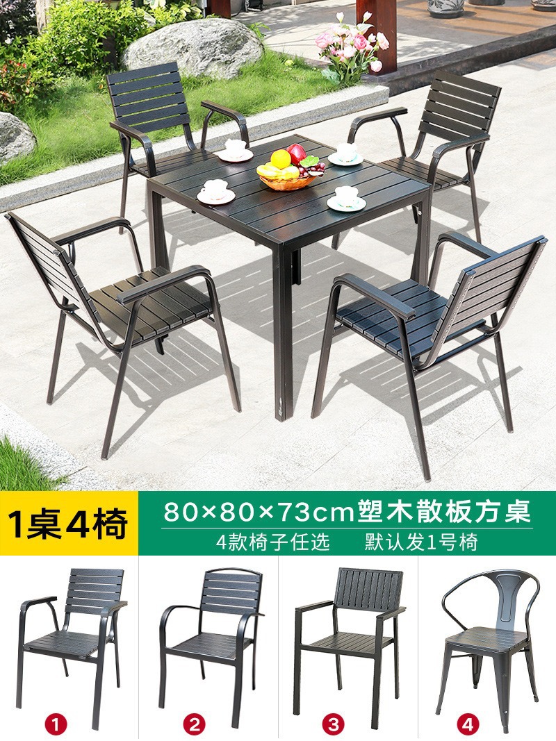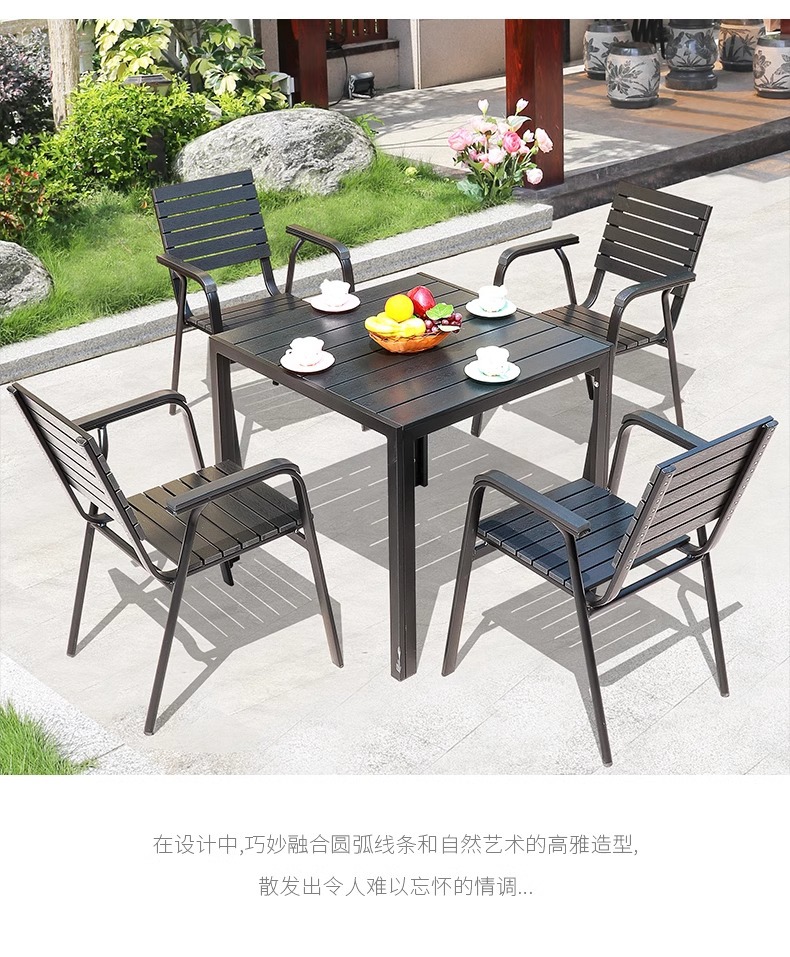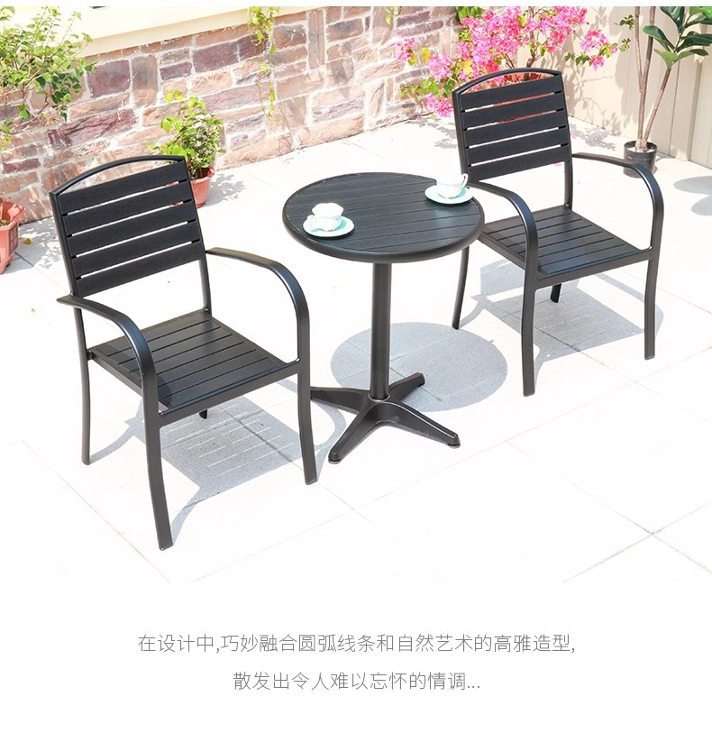 야외 테이블과 의자 플라스틱 나무 야외 방수 선 스크린 레저 가구 안뜰 식사 테이블과 의자 우유 차 가게 야외 테이블과 의자 조합스토어 가기