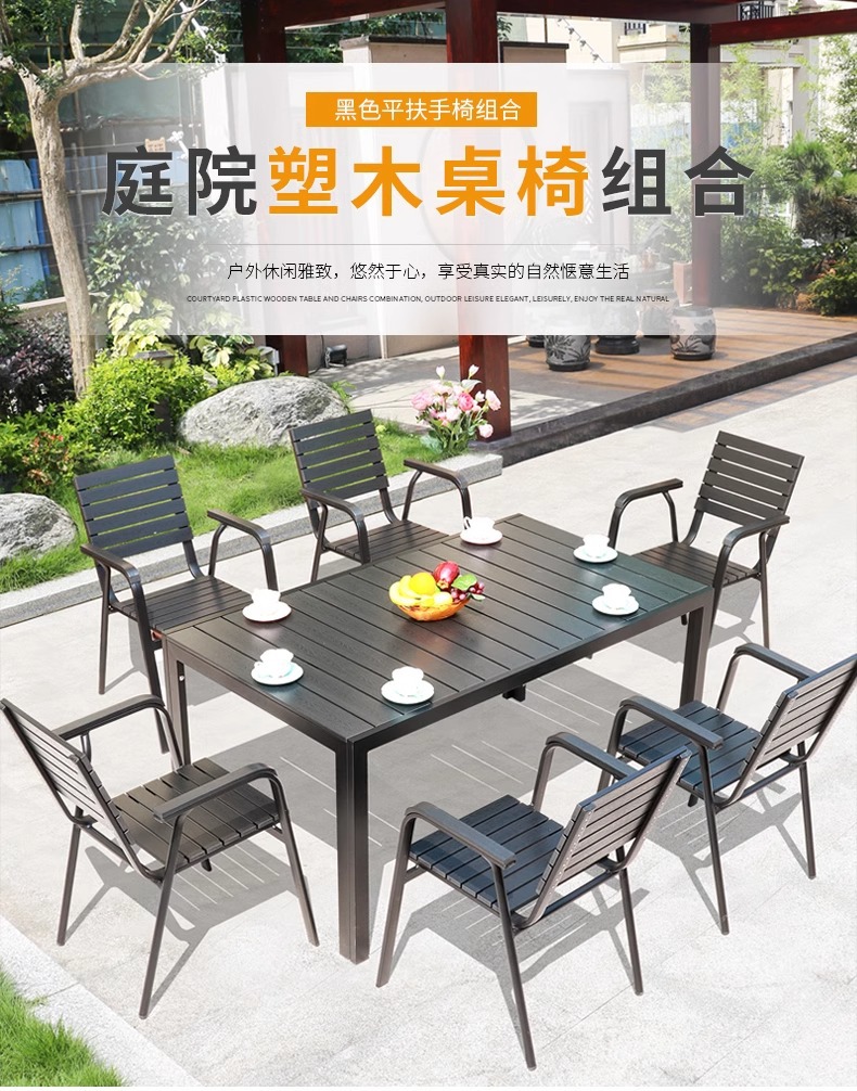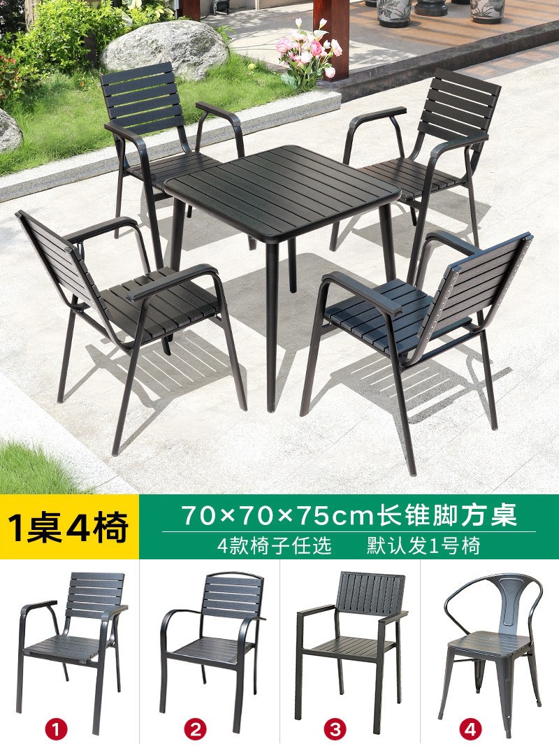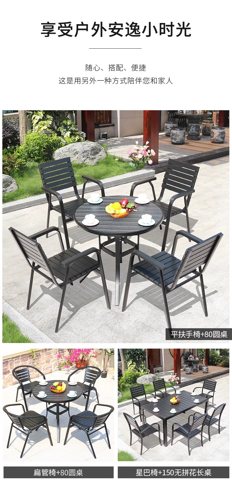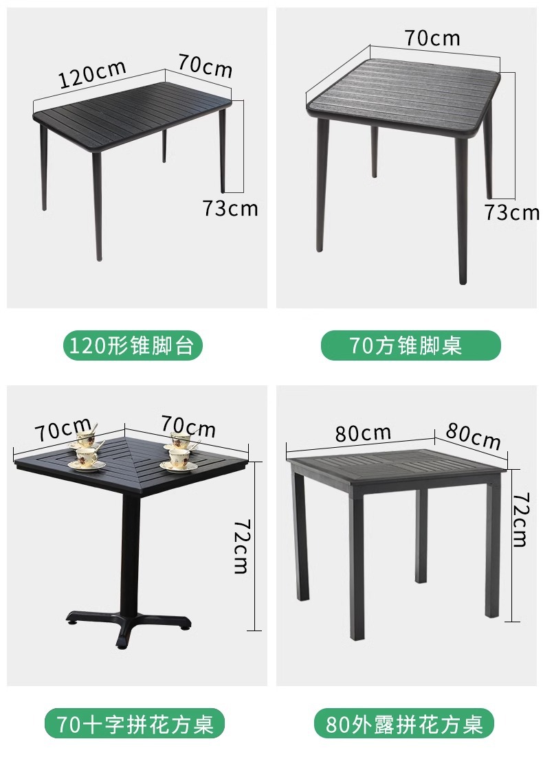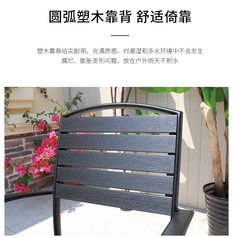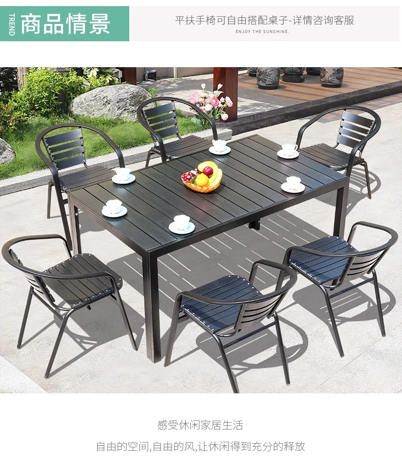 야외 테이블과 의자 플라스틱 나무 야외 방수 선 스크린 레저 가구 안뜰 식사 테이블과 의자 우유 차 가게 야외 테이블과 의자 조합스토어 가기