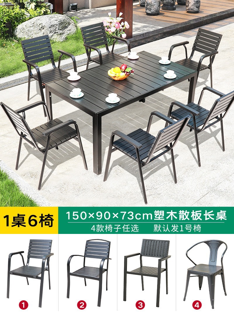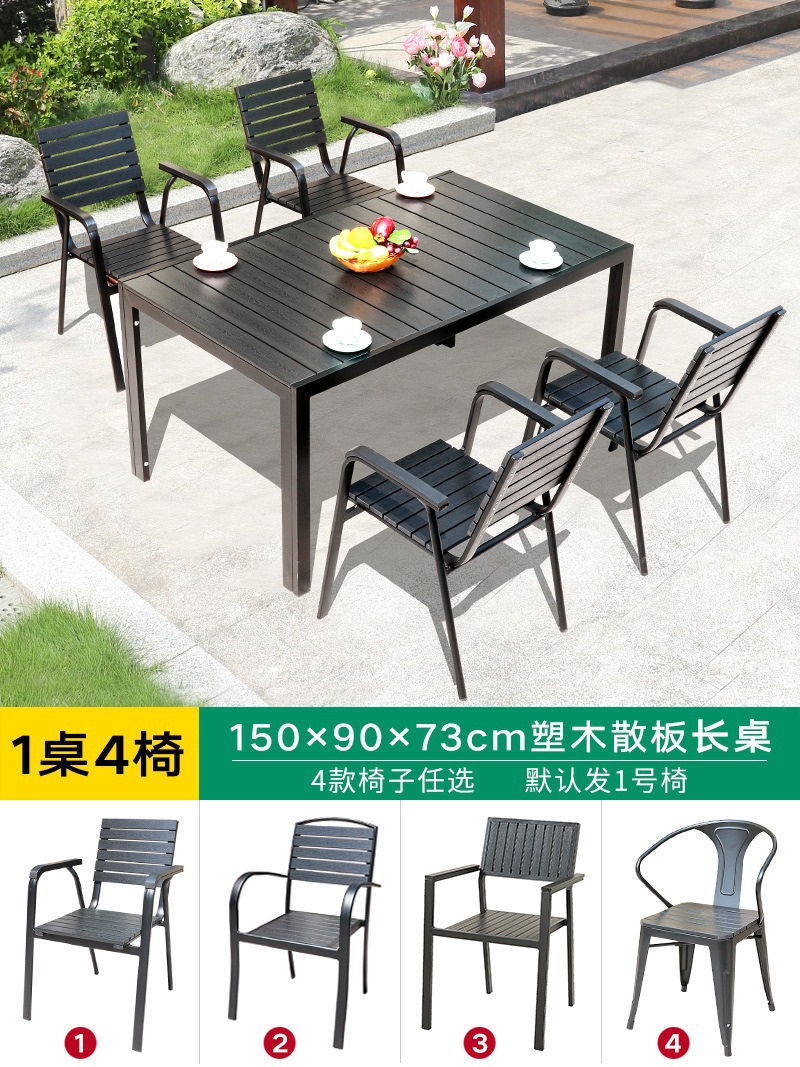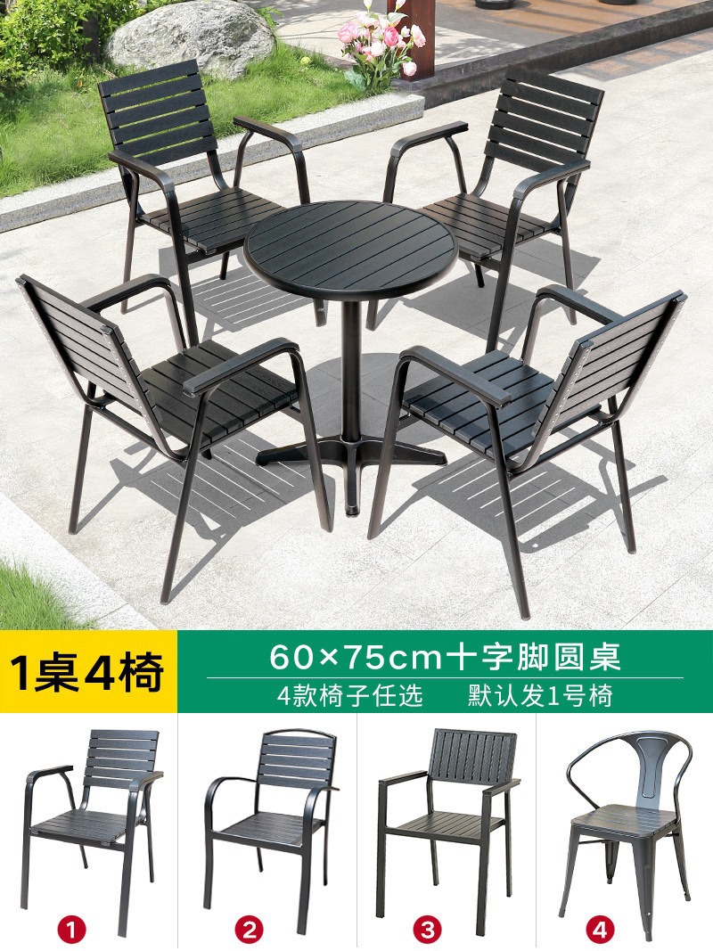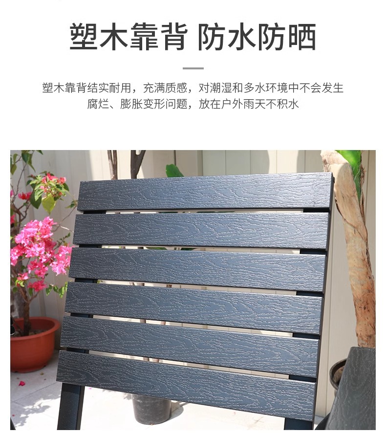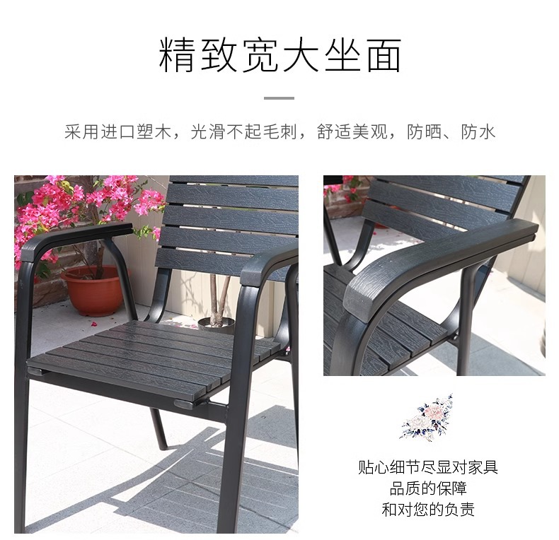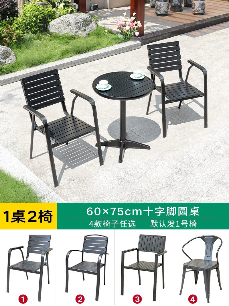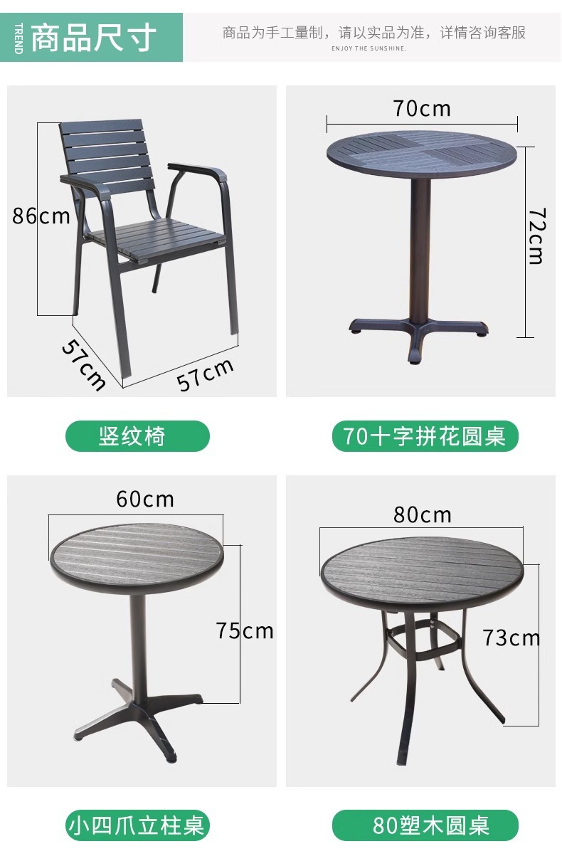 야외 테이블과 의자 플라스틱 나무 야외 방수 선 스크린 레저 가구 안뜰 식사 테이블과 의자 우유 차 가게 야외 테이블과 의자 조합스토어 가기