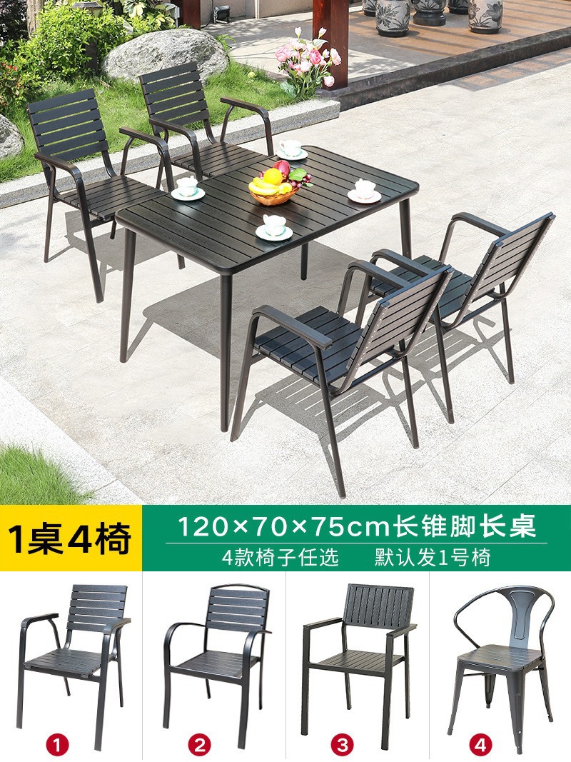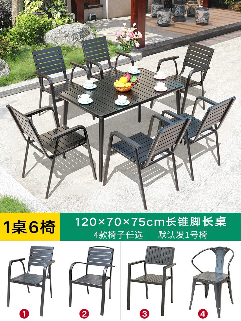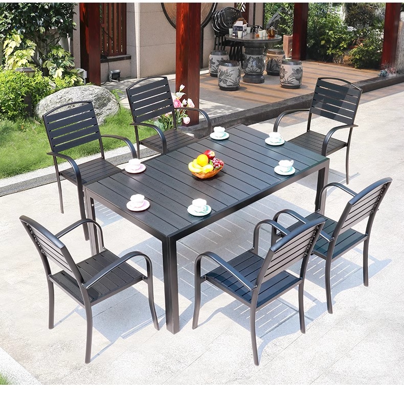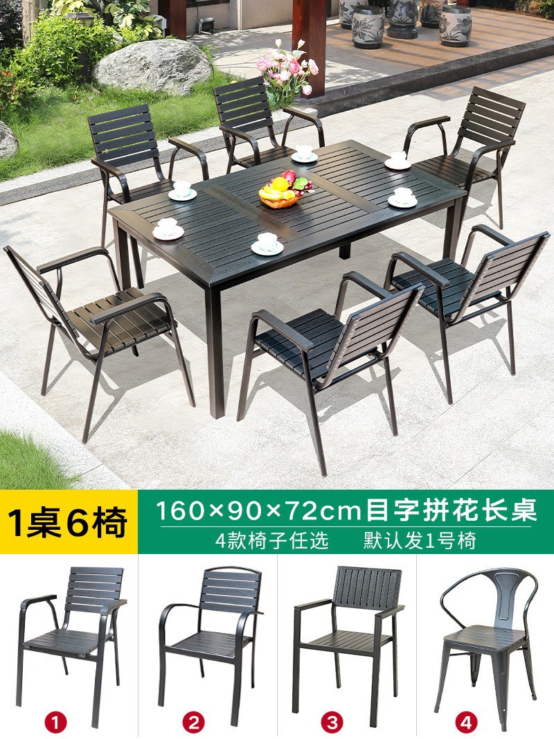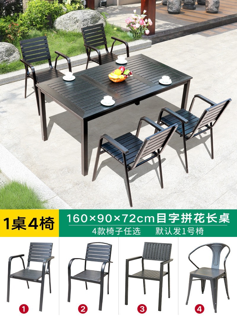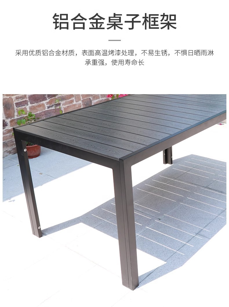 야외 테이블과 의자 플라스틱 나무 야외 방수 선 스크린 레저 가구 안뜰 식사 테이블과 의자 우유 차 가게 야외 테이블과 의자 조합스토어 가기