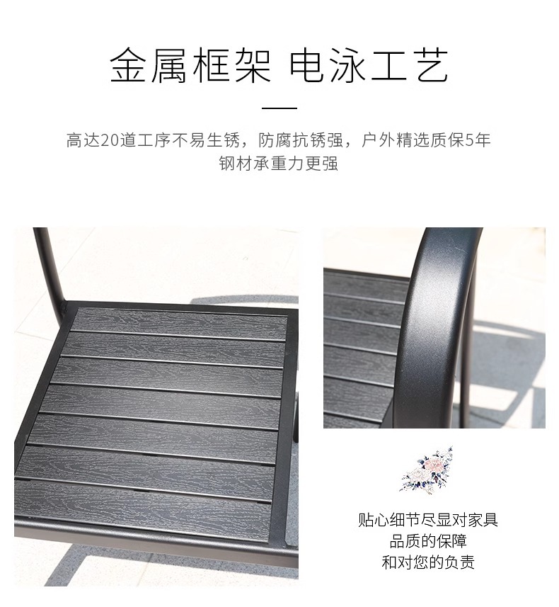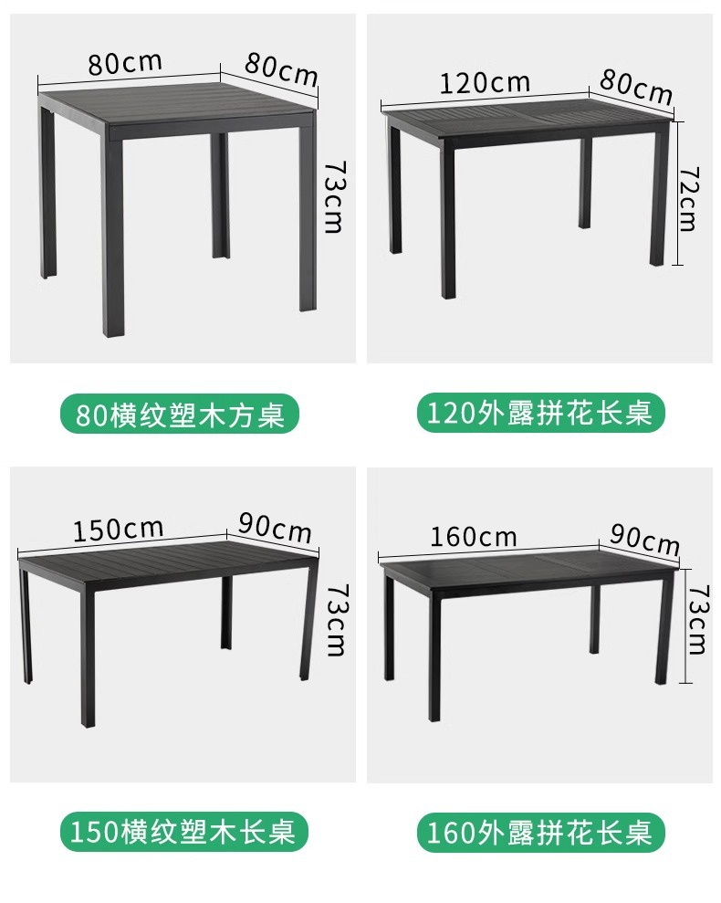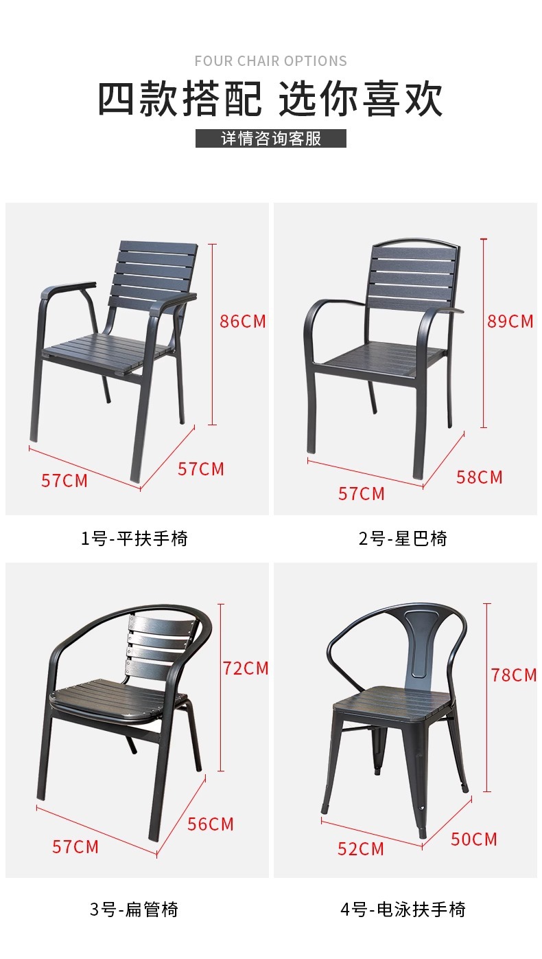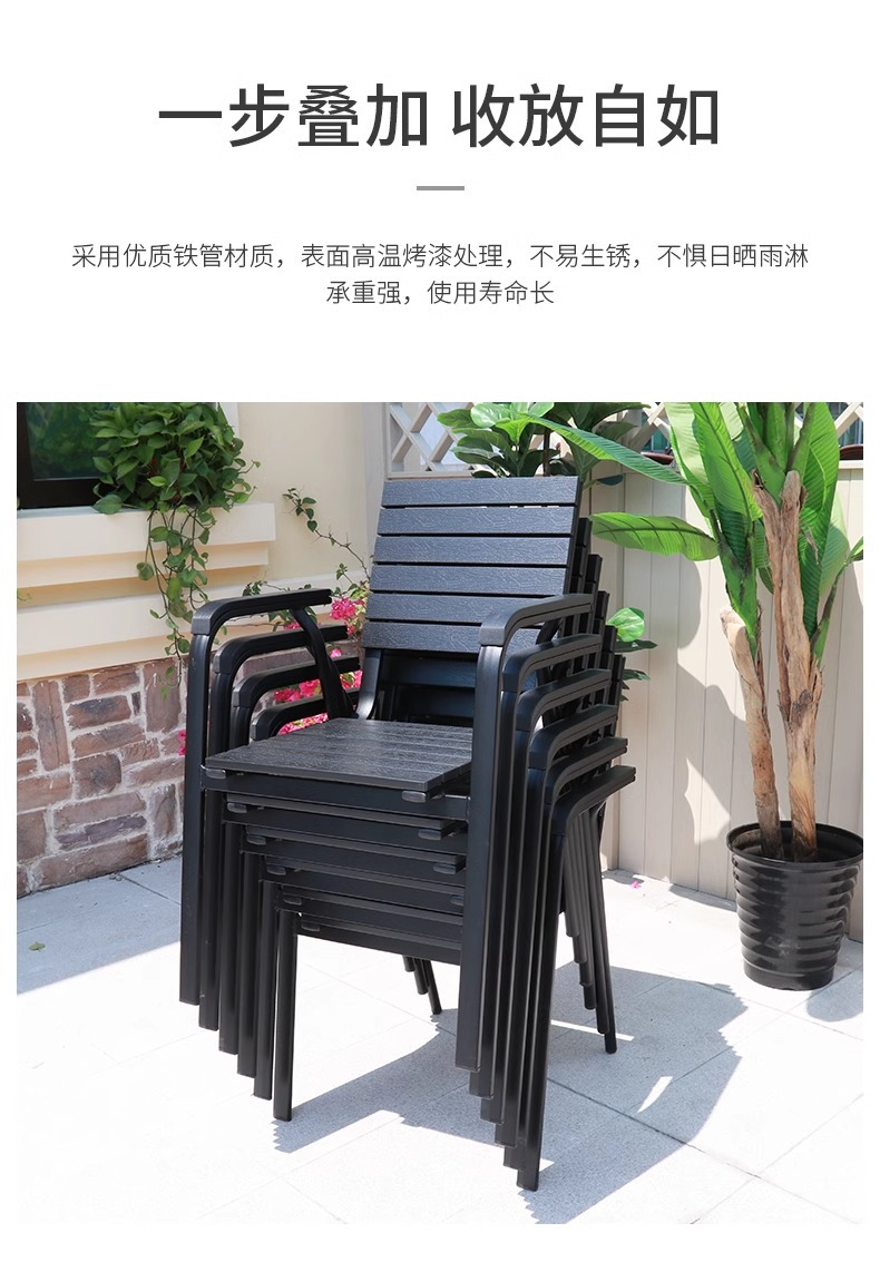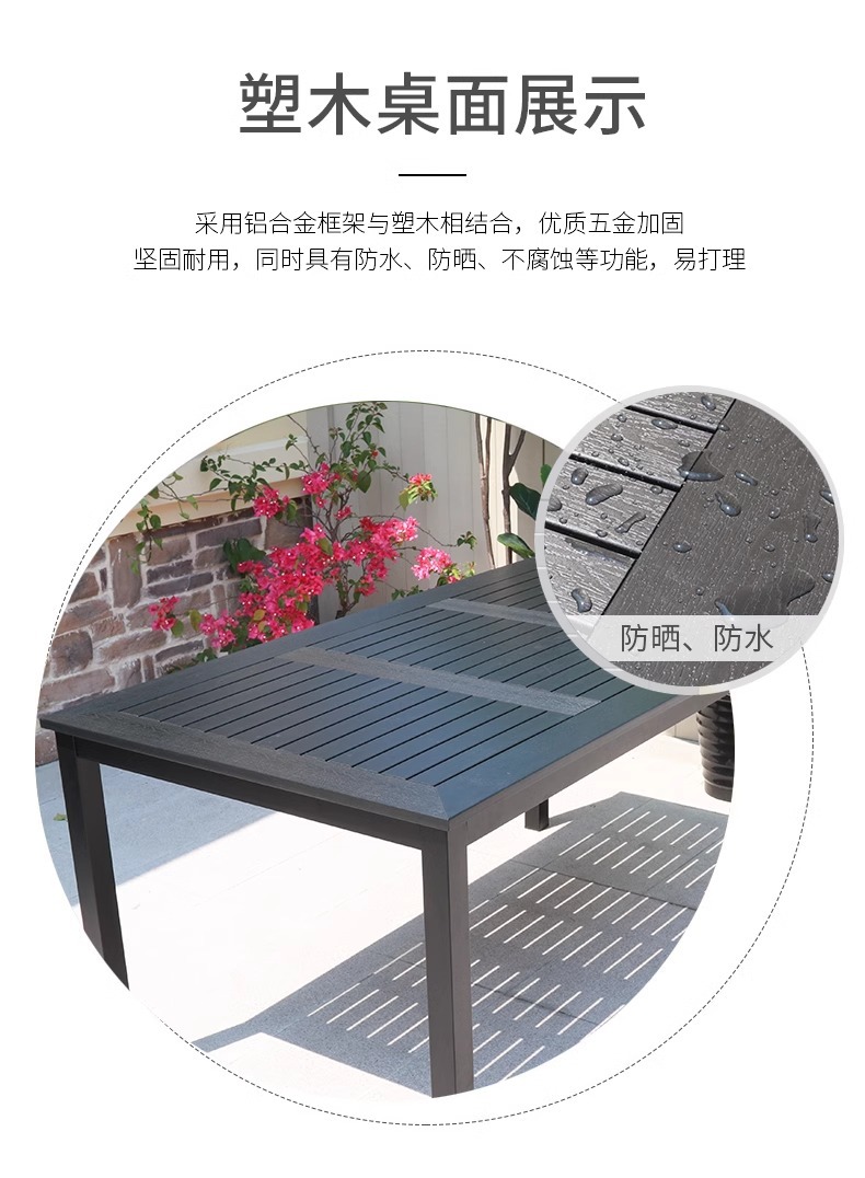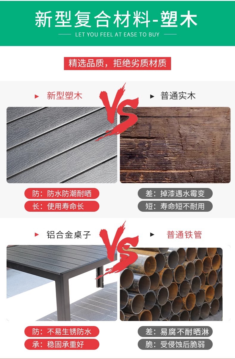 야외 테이블과 의자 플라스틱 나무 야외 방수 선 스크린 레저 가구 안뜰 식사 테이블과 의자 우유 차 가게 야외 테이블과 의자 조합스토어 가기