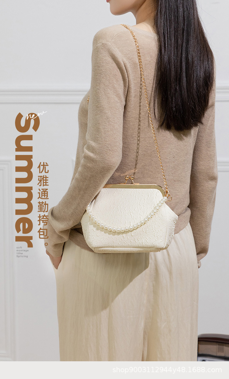 진주 가방 여름 새로운 휴대용 쉘 가방 새로운 중국 스타일 국가 스타일 가방 2024 구슬 패션 크로스 바디 여성용 가방스토어 가기