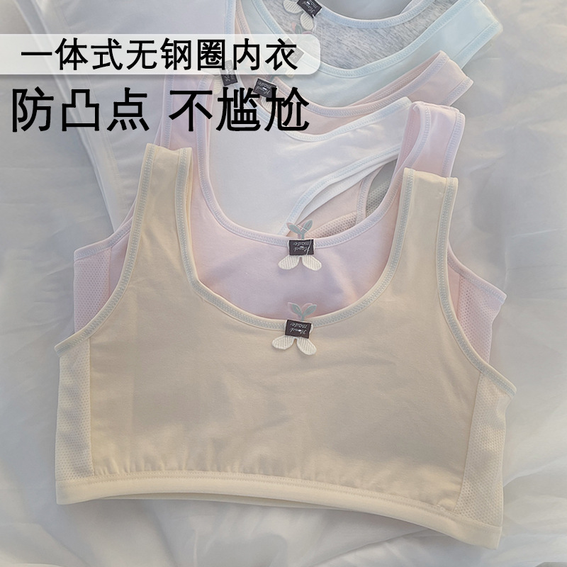 여아 속옷 개발 기간 9-15 세 초등학생 작은 조끼 통기성 추적없는 얼음 실크 브래지어 중학교 여학생 브라