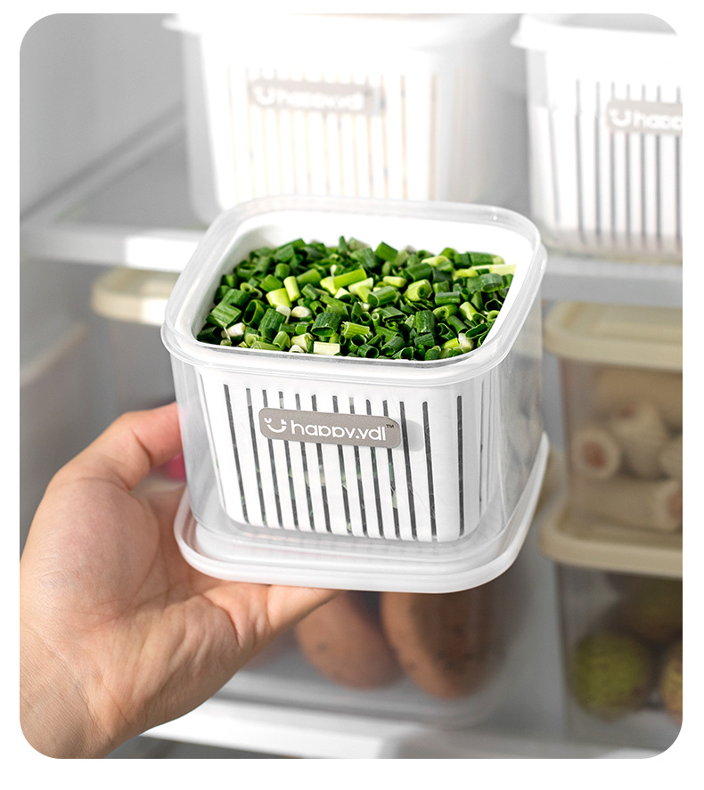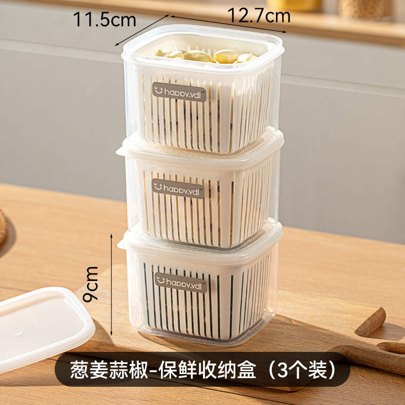 주방 두피, 생강 및 마늘 저장 상자 냉장고 송아지 작은 신선한 보관 상자 뚜껑 배수 신선한 보관 상자가있는 광장 야채 상자