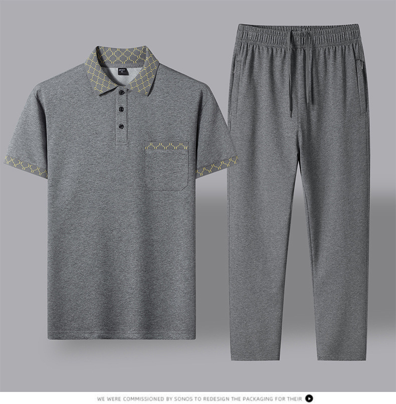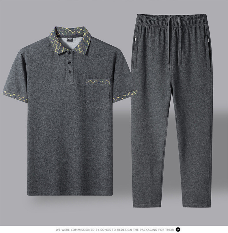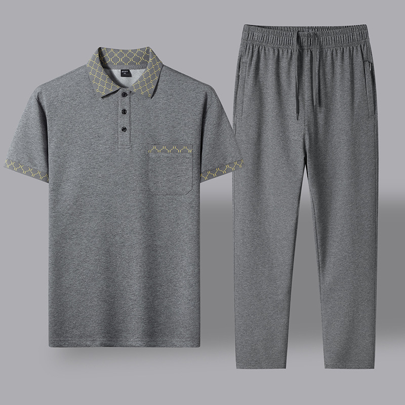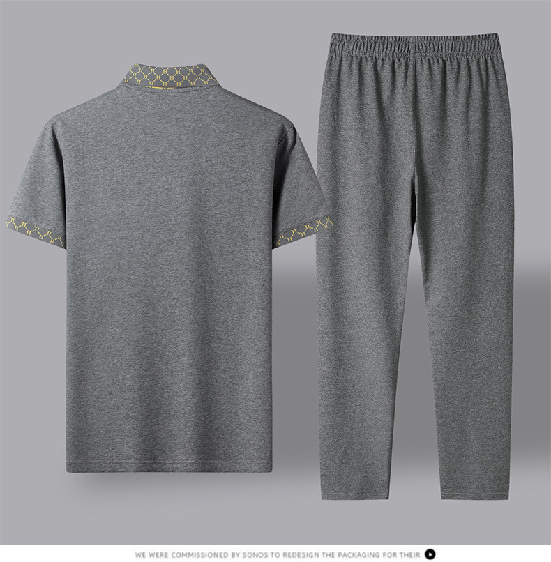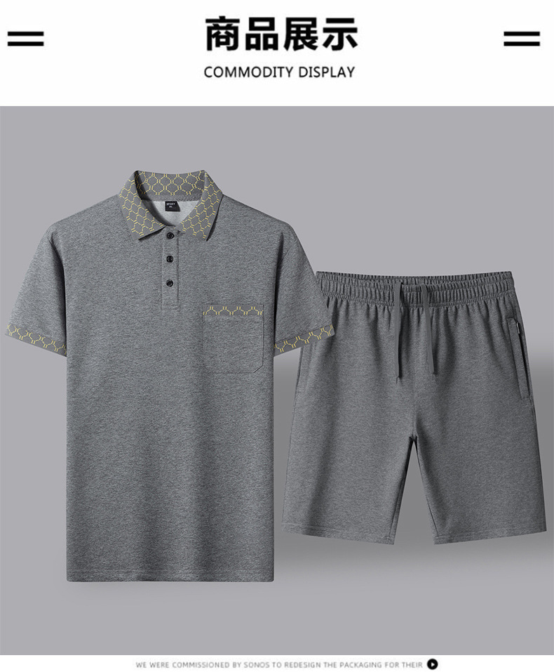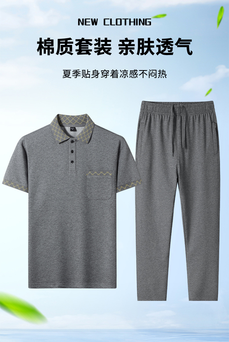 아빠 여름 면화 캐주얼 세트 남성 반팔 중년 및 노인 느슨한 캐주얼 랩 폴로 셔츠 할아버지 바지스토어 가기