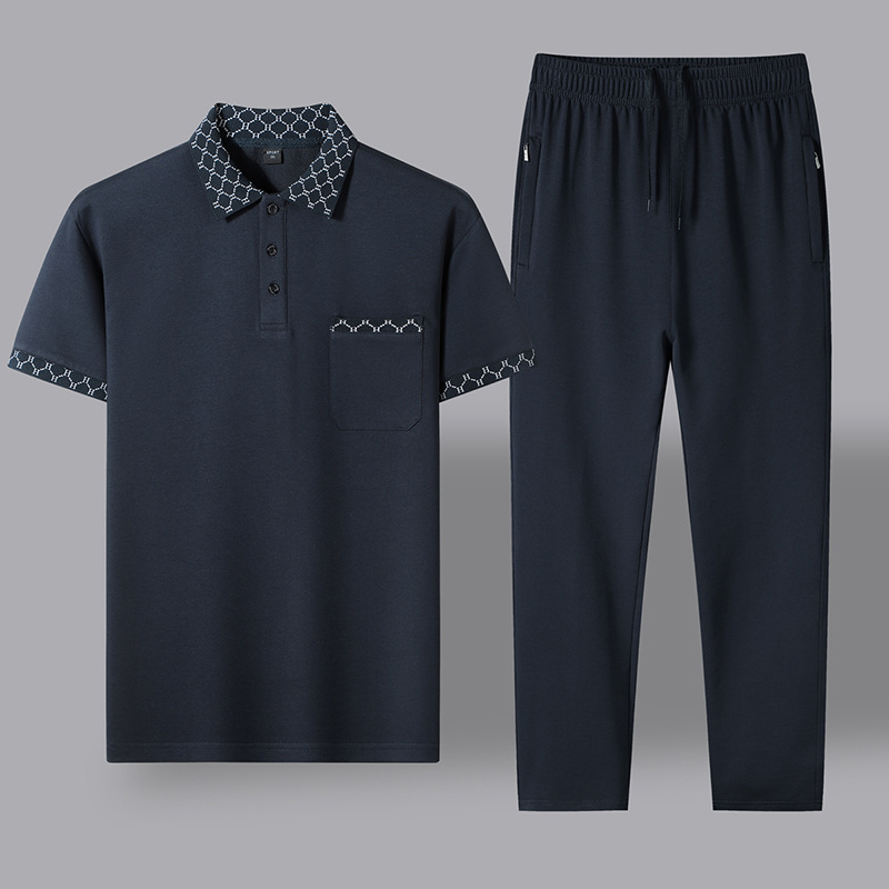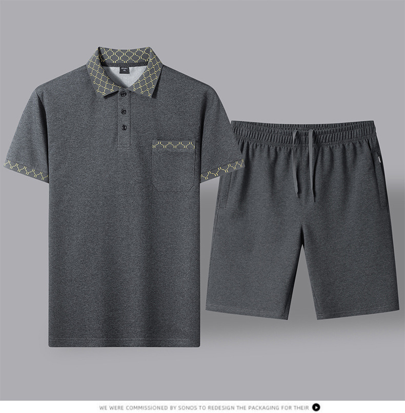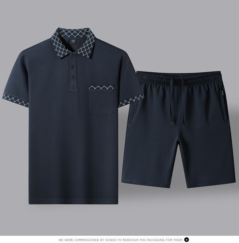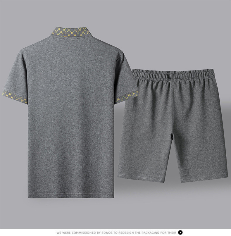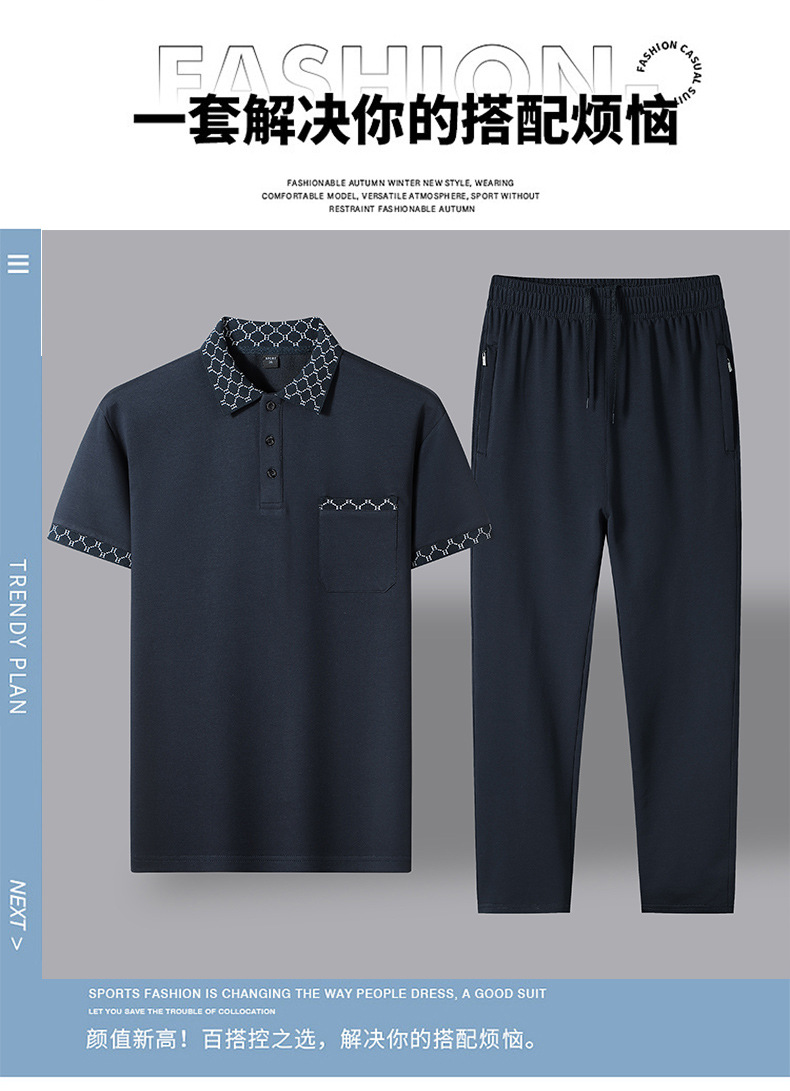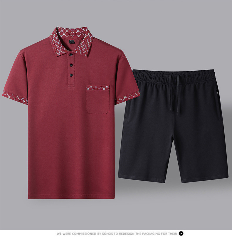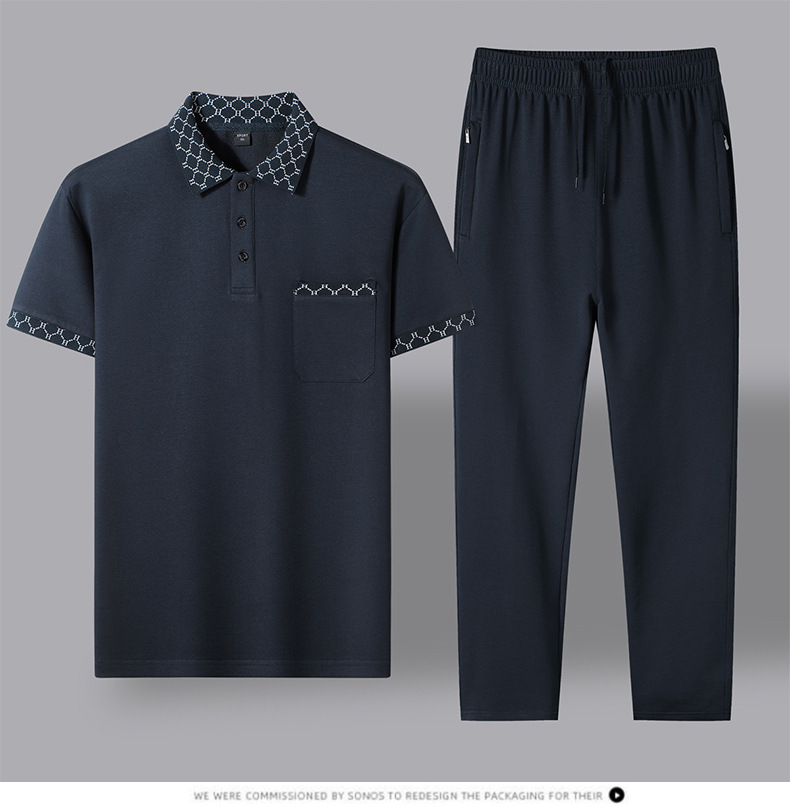 아빠 여름 면화 캐주얼 세트 남성 반팔 중년 및 노인 느슨한 캐주얼 랩 폴로 셔츠 할아버지 바지스토어 가기