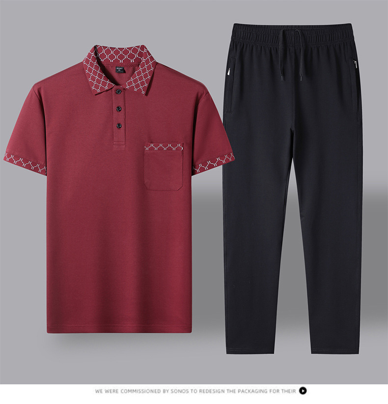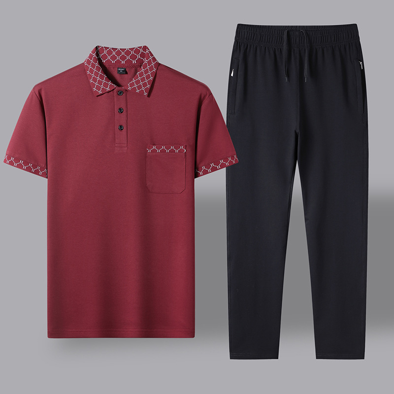 아빠 여름 면화 캐주얼 세트 남성 반팔 중년 및 노인 느슨한 캐주얼 랩 폴로 셔츠 할아버지 바지