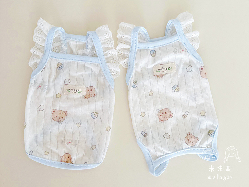 미파야 애완동물 고양이 강아지 옷 순면 니트 여름용 통기성 자외선 차단 배덮는 네발 에어컨 옷 수술복