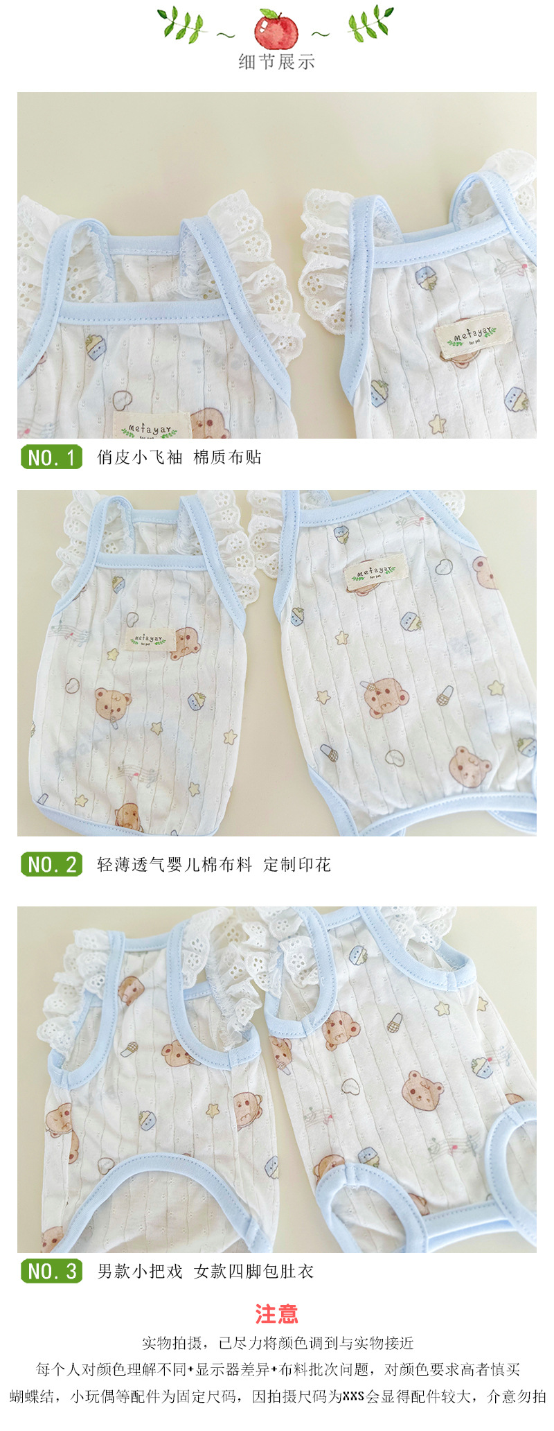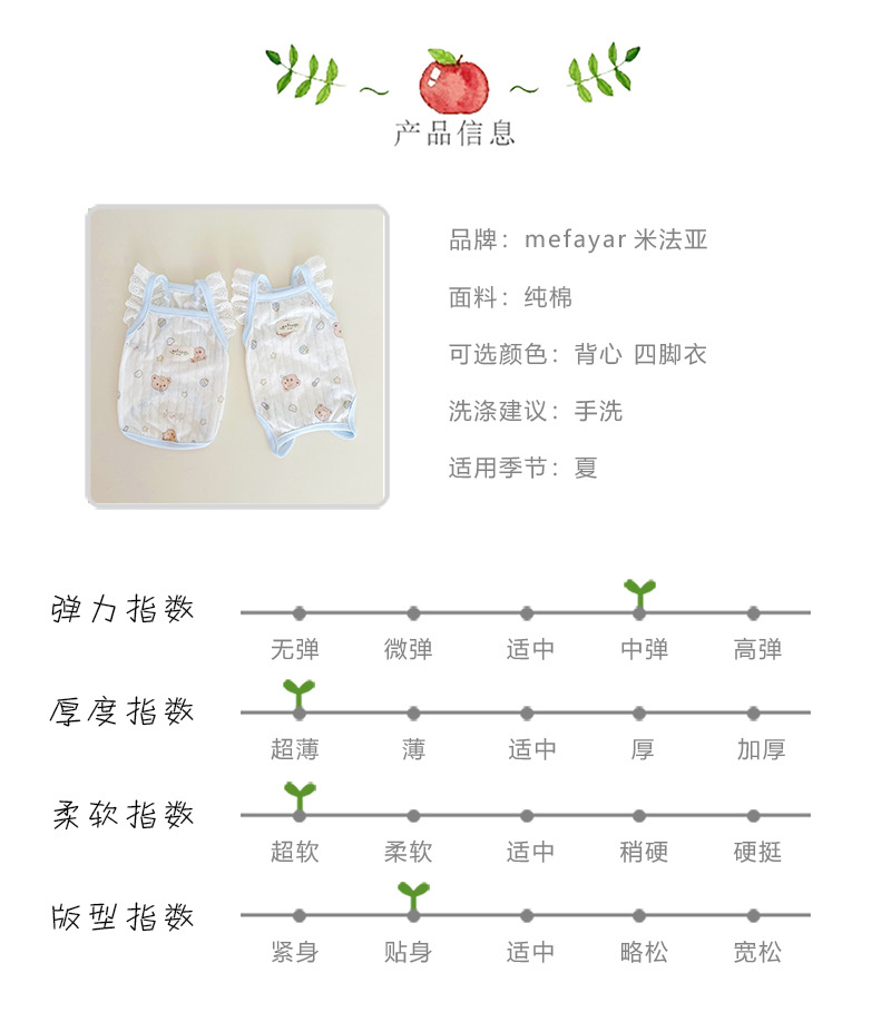 미파야 애완동물 고양이 강아지 옷 순면 니트 여름용 통기성 자외선 차단 배덮는 네발 에어컨 옷 수술복스토어 가기