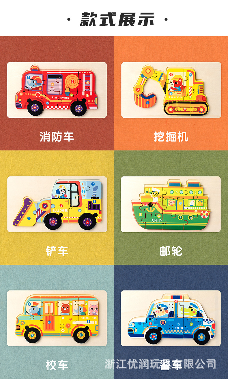 어린이 나무 퍼즐 1-3 세 3 차원 큰 나무 스냅 아기 조기 교육 계몽주의 교통 교육 장난감스토어 가기