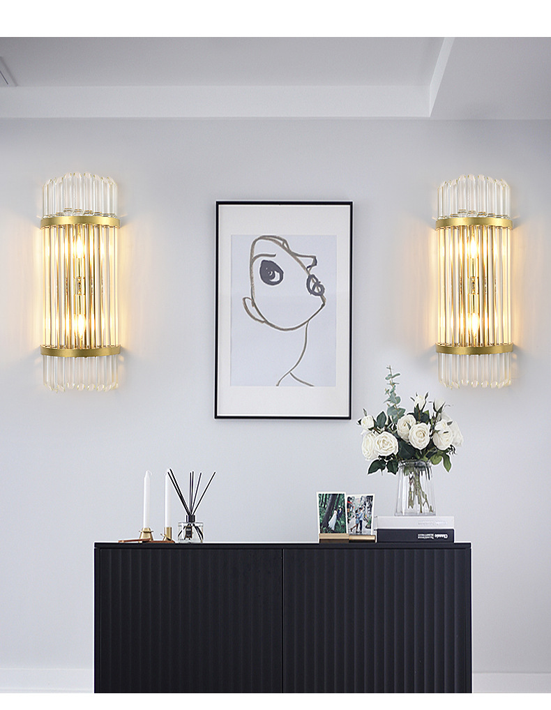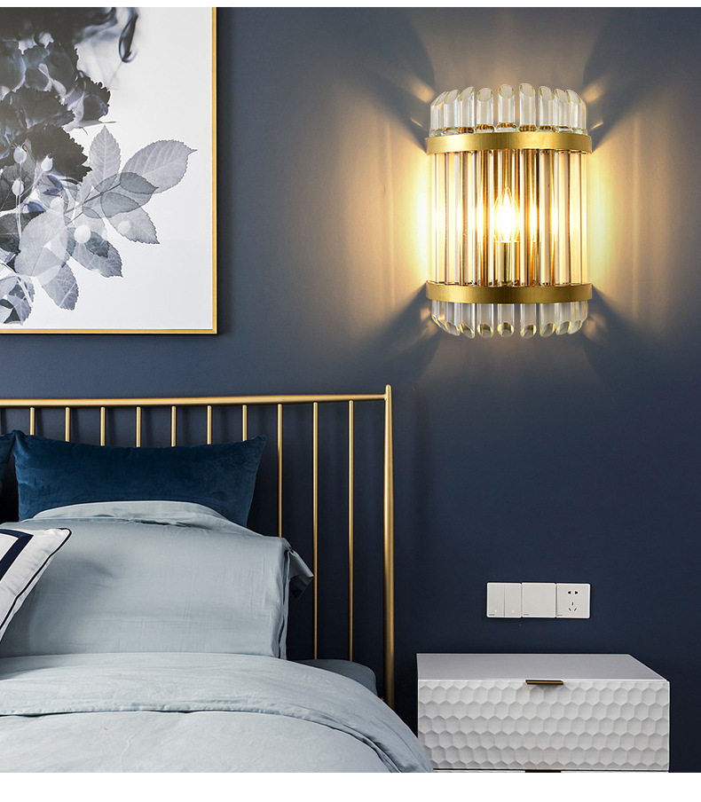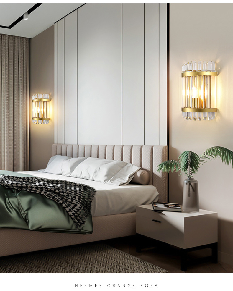 침실 침실 램프 빛 고급 거실 TV 배경 벽 크리스탈 벽 램프 간단한 현대 높은 감각 측면 장식 램프스토어 가기