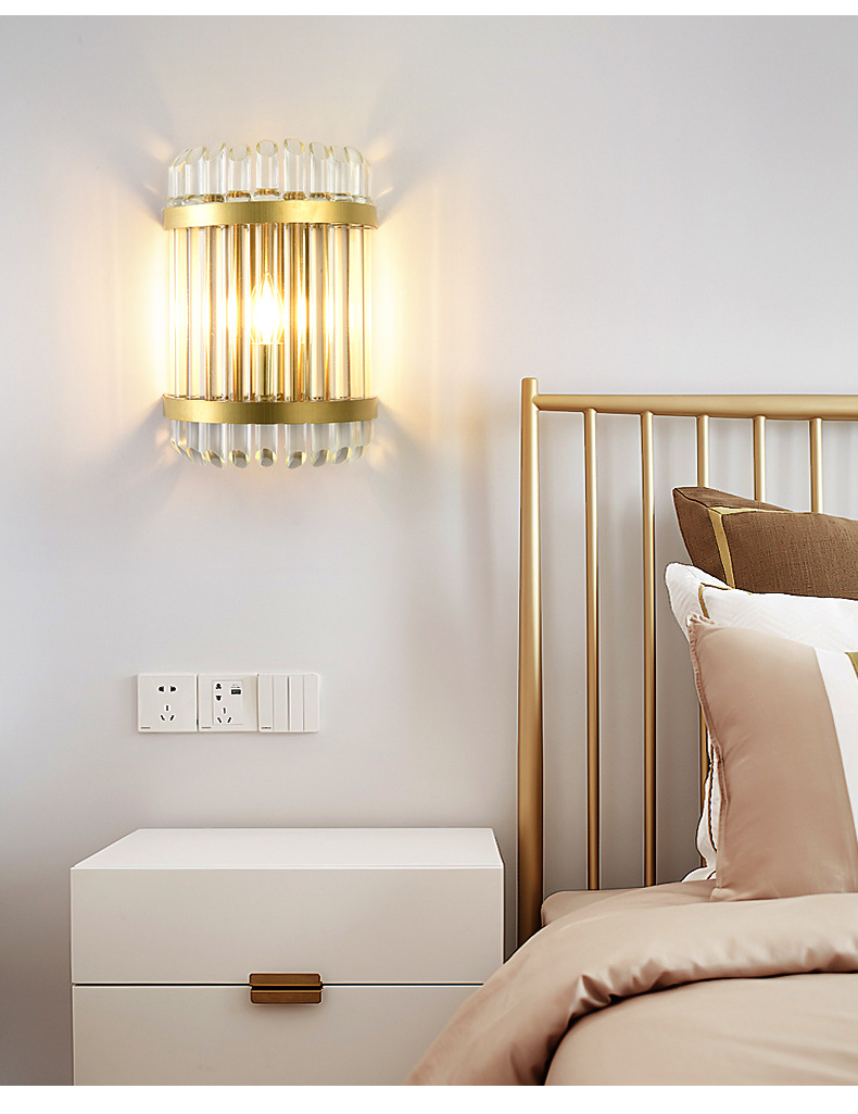 침실 침실 램프 빛 고급 거실 TV 배경 벽 크리스탈 벽 램프 간단한 현대 높은 감각 측면 장식 램프