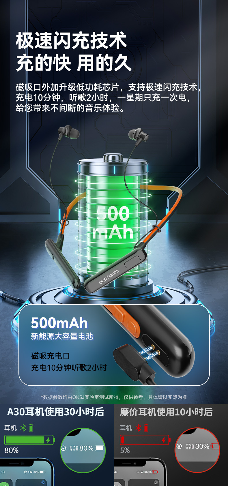 새로운 교수형 목 귀 무선 블루투스 헤드셋 IPX7 방수 ANC 소음 감소 긴 배터리 수명 스포츠 게임 헤드셋
