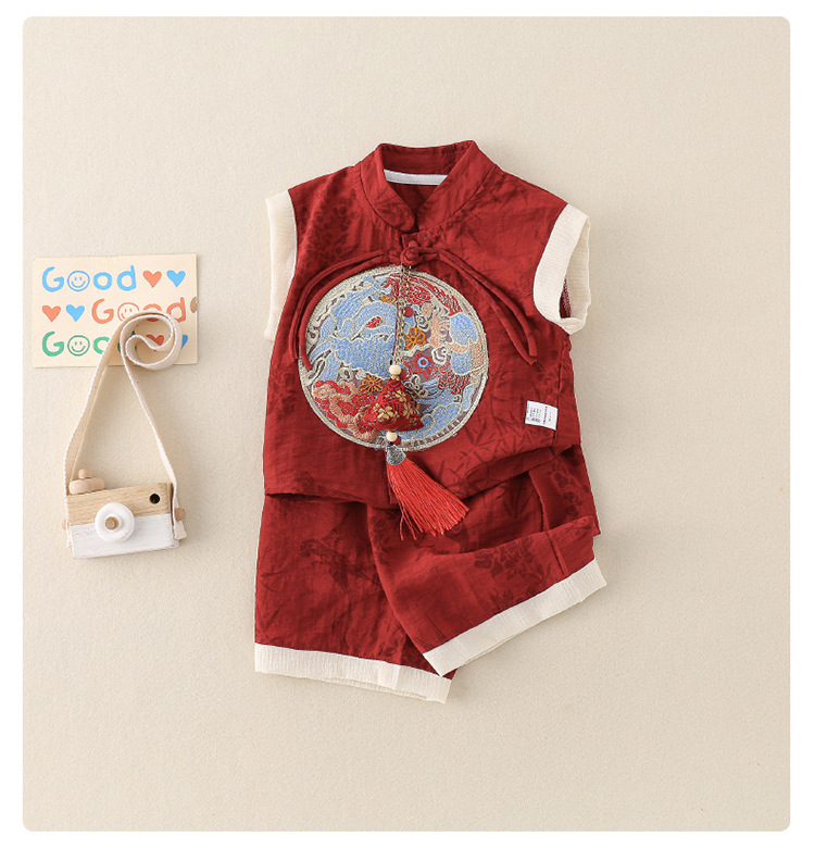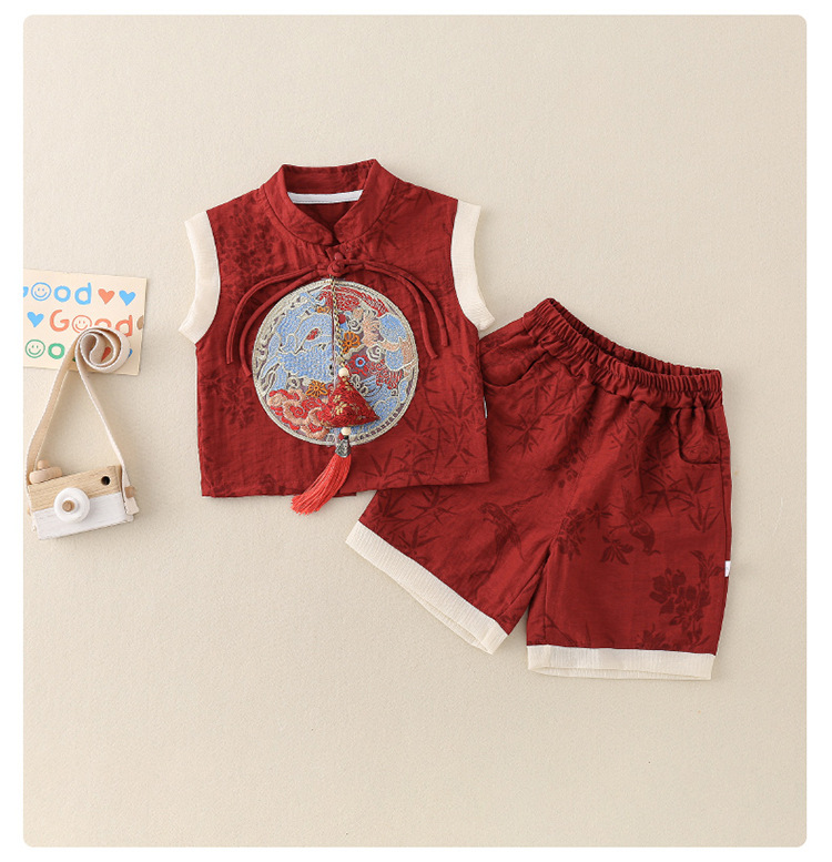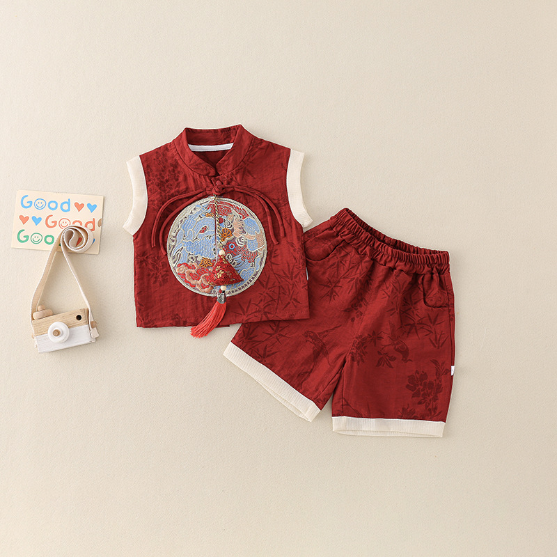 여름 아기 세트 얇은 한 살짜리 아기 레드 원피스 두 조각 어린이 탕 세트 중국식 드래곤 보트 축제 옷