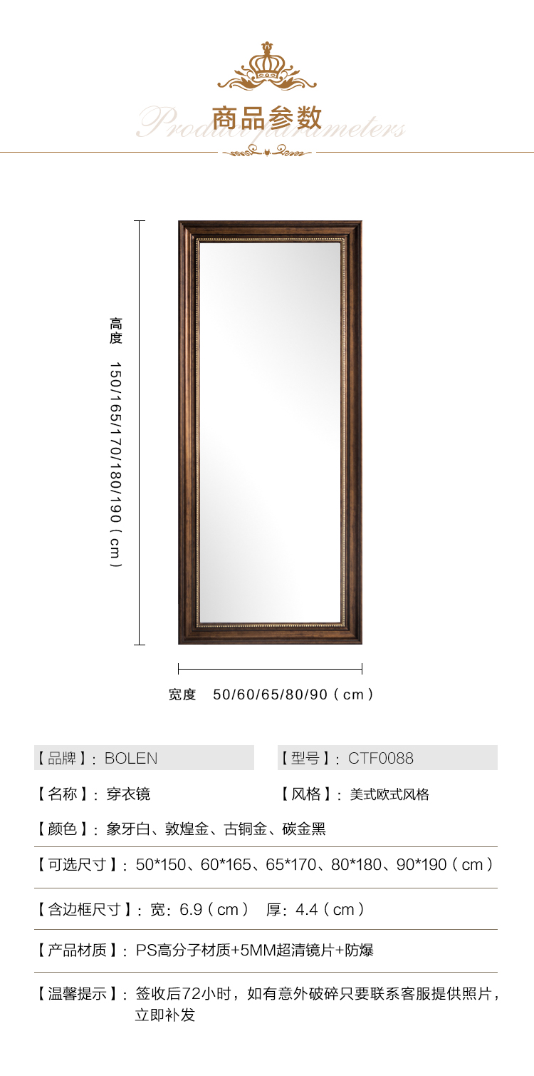 9C 미국 유럽 드레싱 거울 전신 피팅 거울 바닥 거울 복고풍 전신 의류 매장 거울