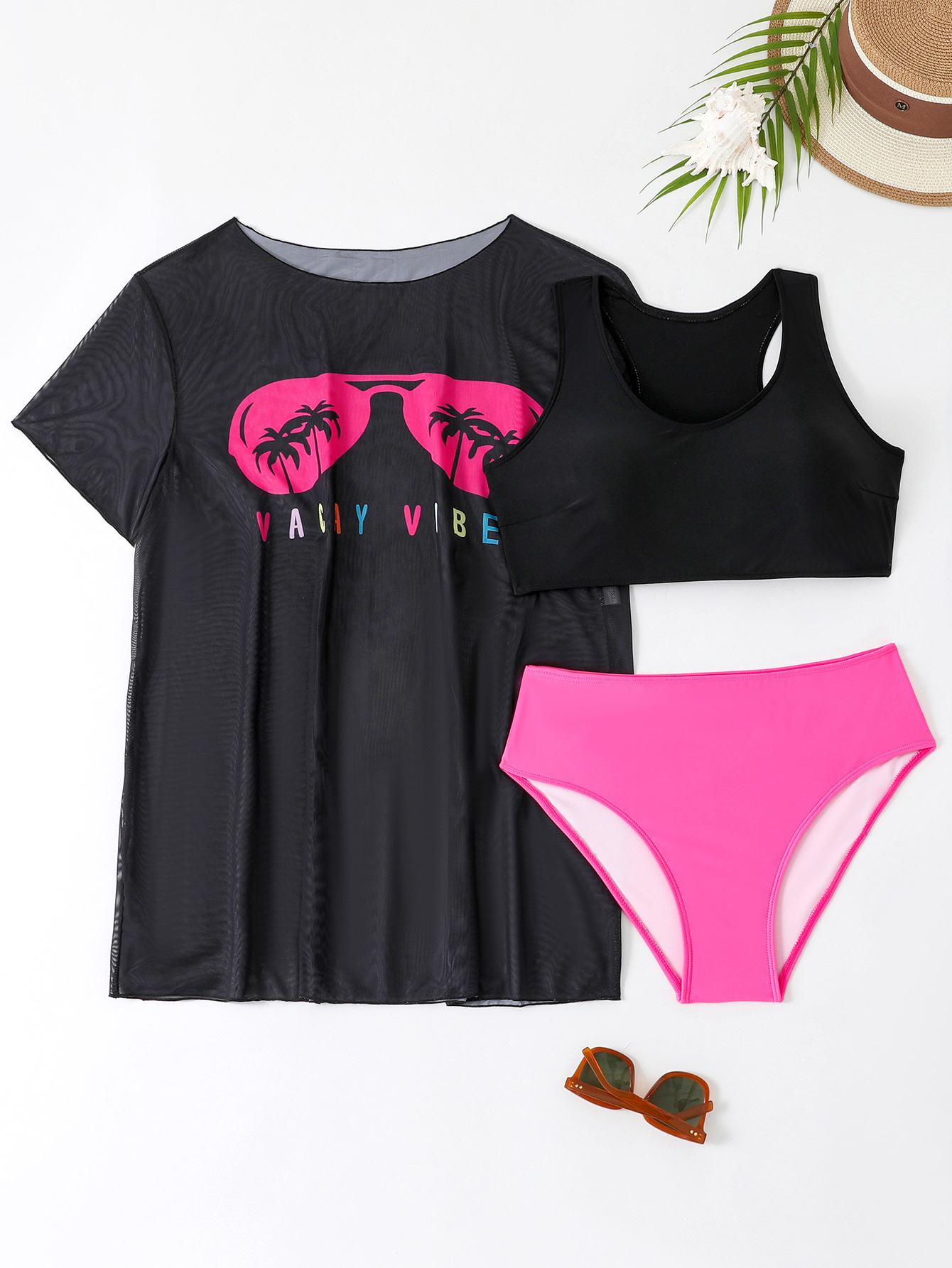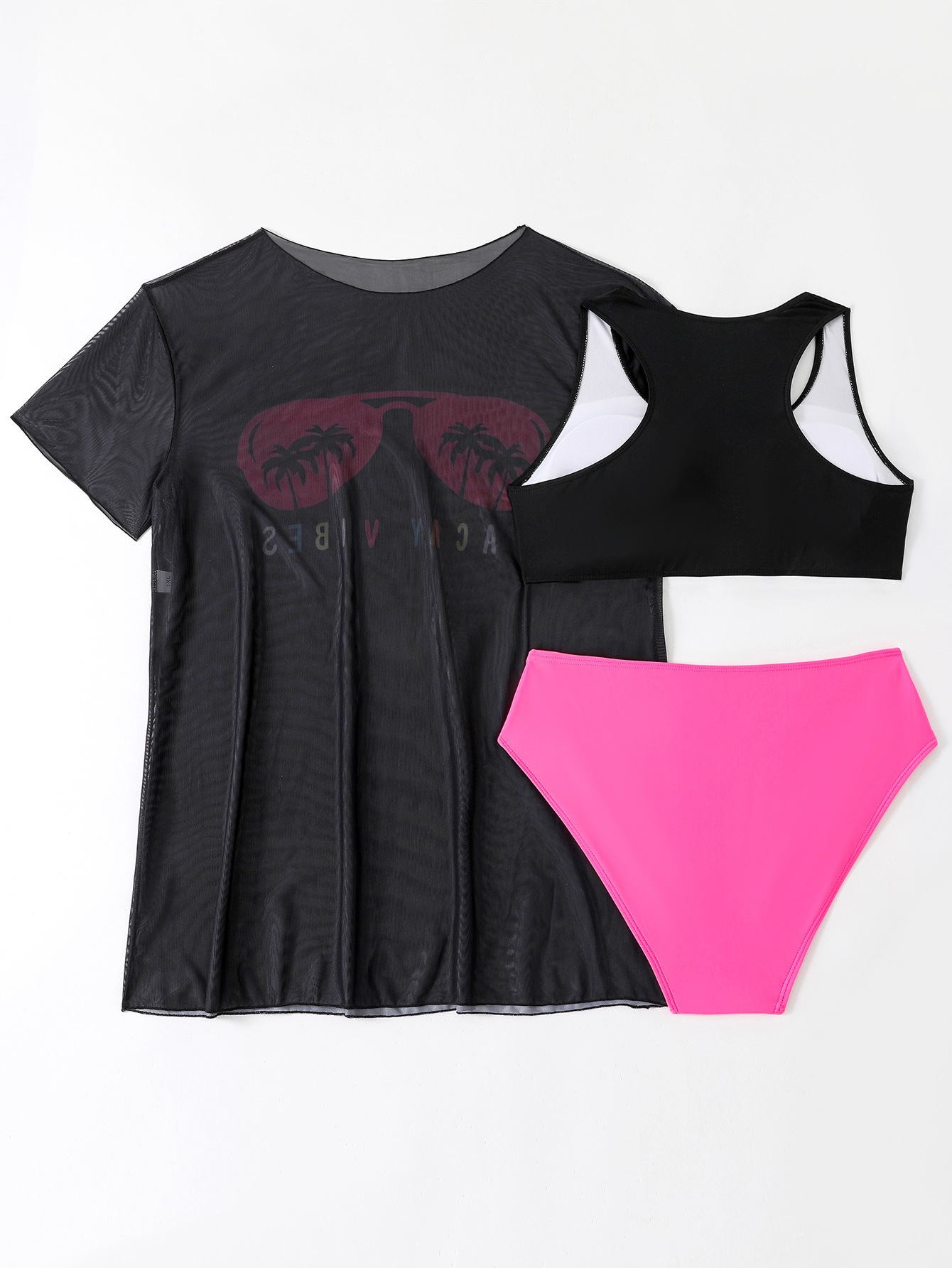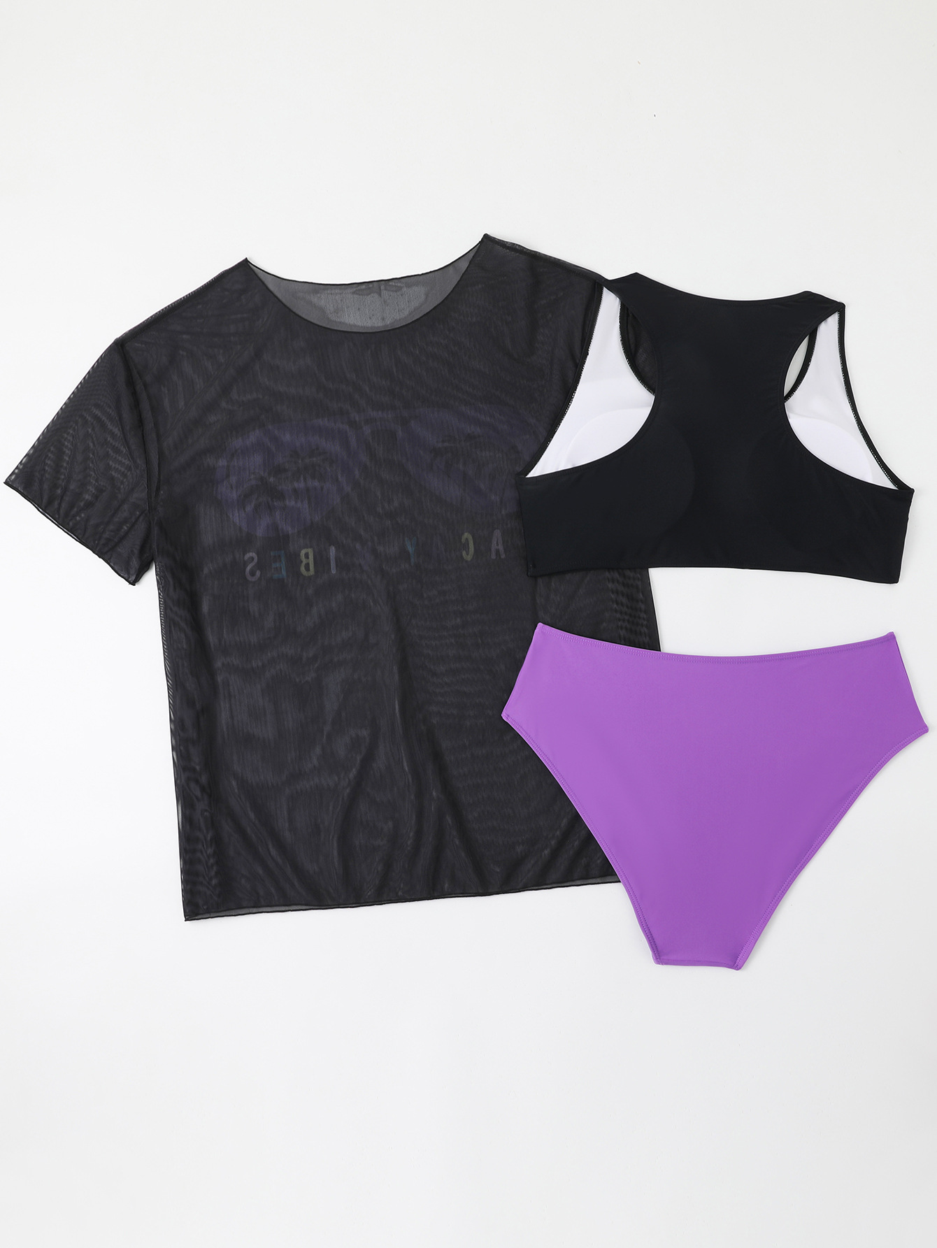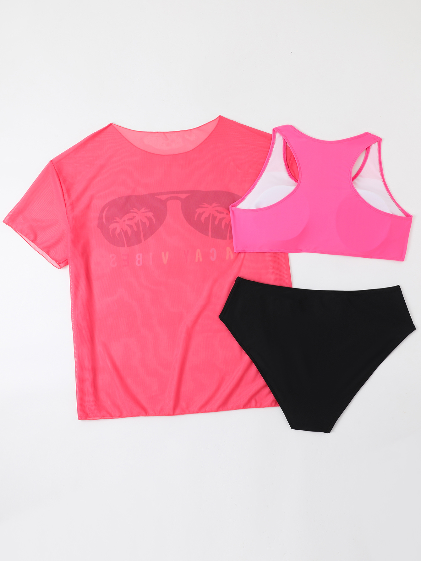 2024 유럽과 미국의 새로운 대외 무역 수영복 고정 판 인쇄 메쉬 관점 블라우스 플러스 사이즈 비키니 3 조각 수영복스토어 가기