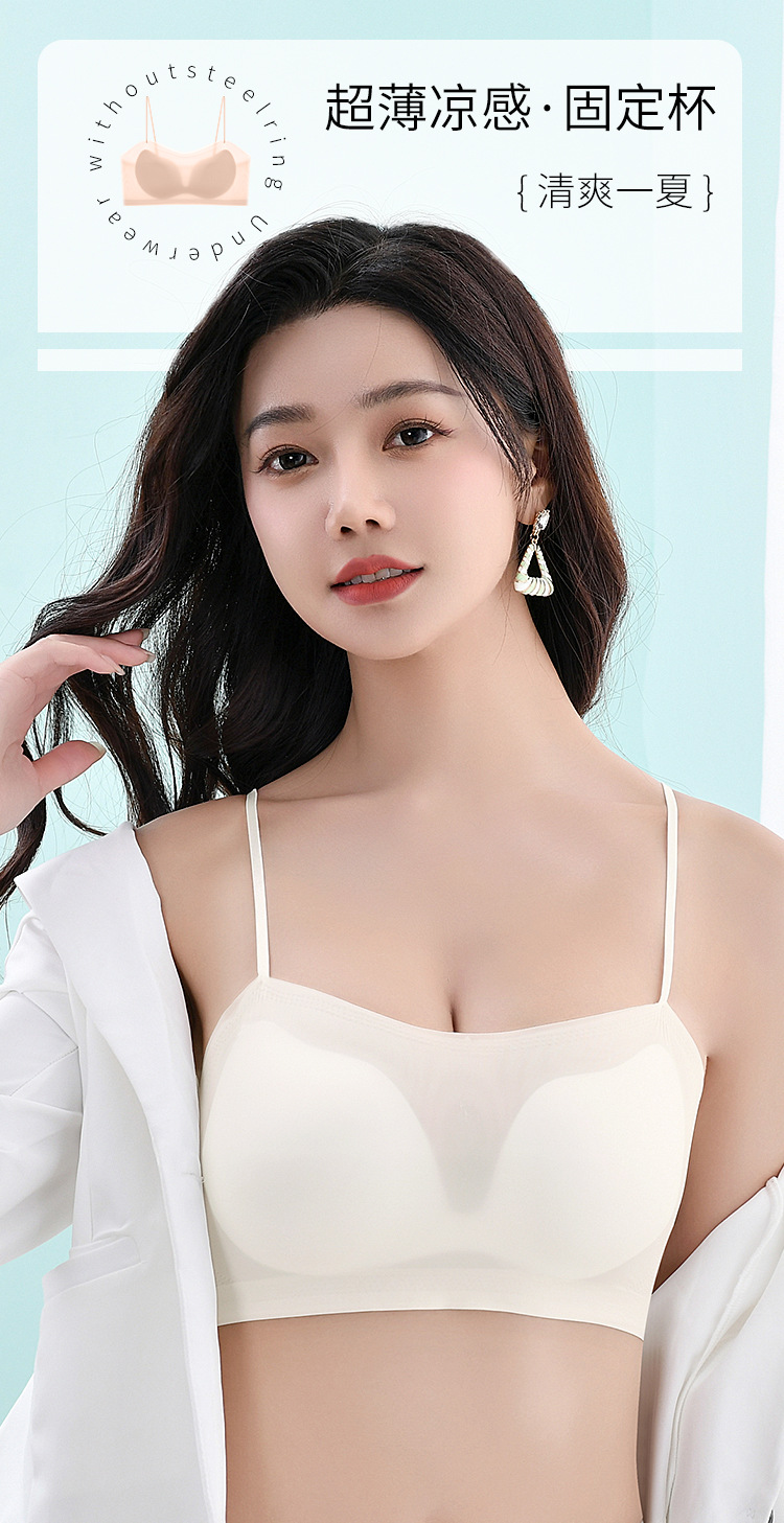 여름 원활한 얇은 아름다운 등 통합 슬링 속옷 여성 고정 컵 가슴 패드가 달린 스틸 링없이 스포츠 브래지어 수집스토어 가기